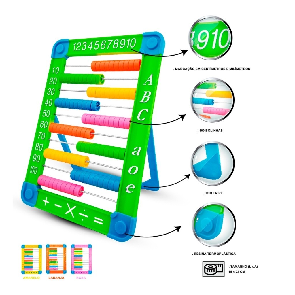 Ábaco Escolar com Tripé 100 Bolinhas Laranja - Kaz Zoo