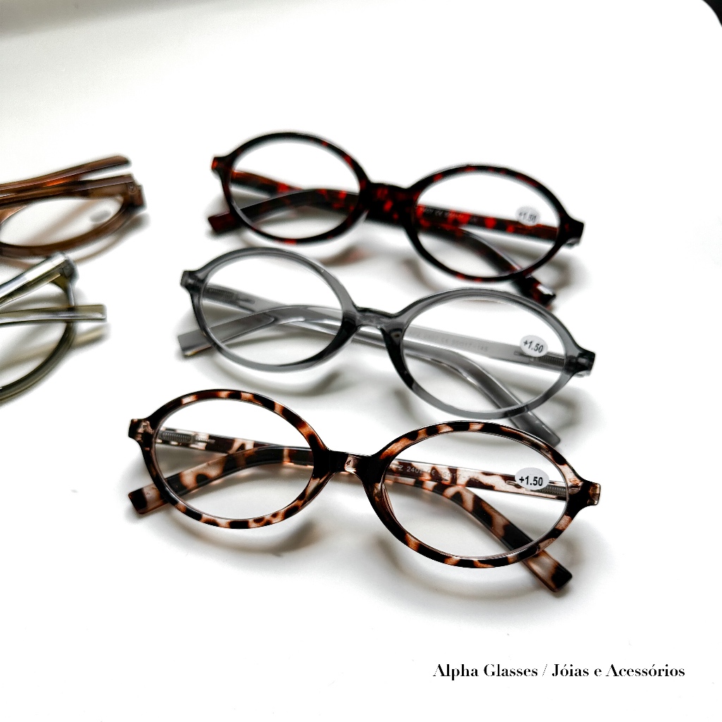 Óculos de Grau Leitura pra Perto Presbiopia unissex Feminino Armação Ovais Moda Retro +1.00 ao 4.00
