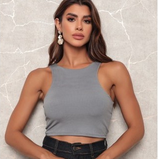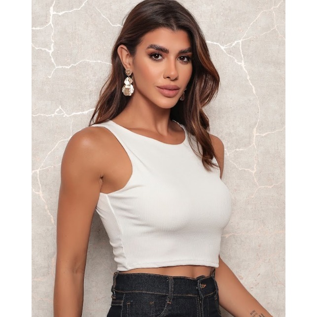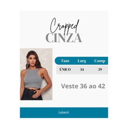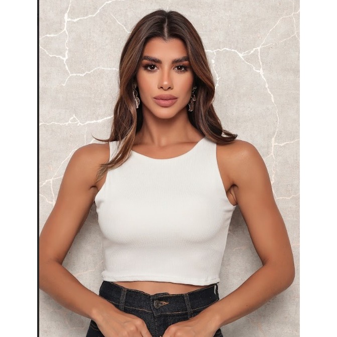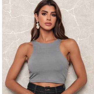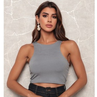 Cropped Feminino Liso Regata Básica Tamanho único Nadador Cavada Forro Duplo Com Elastano Cinza Blogueirinha