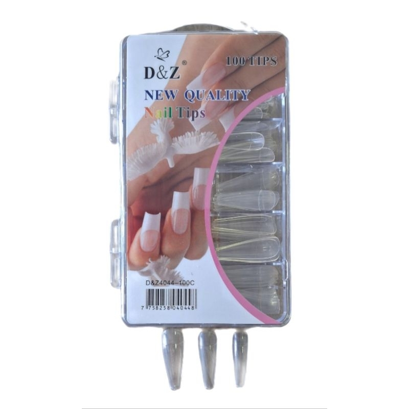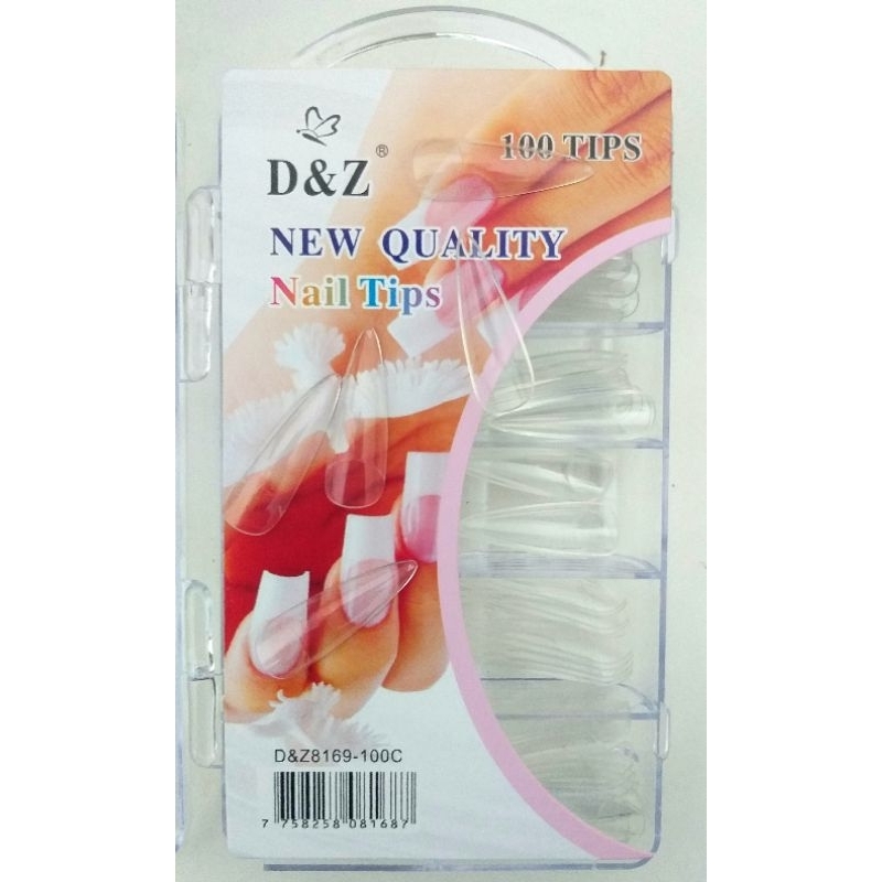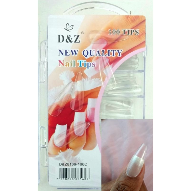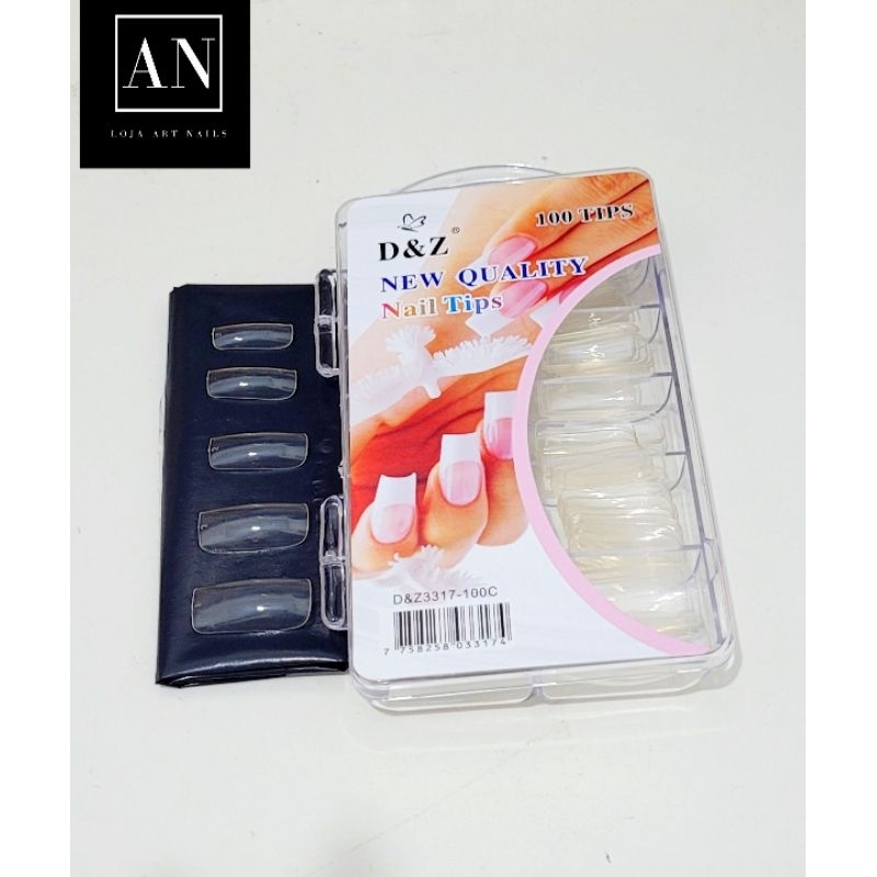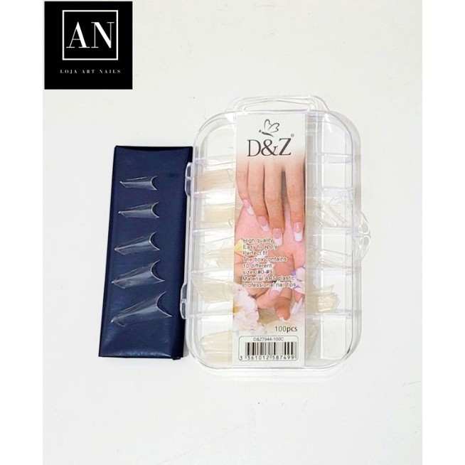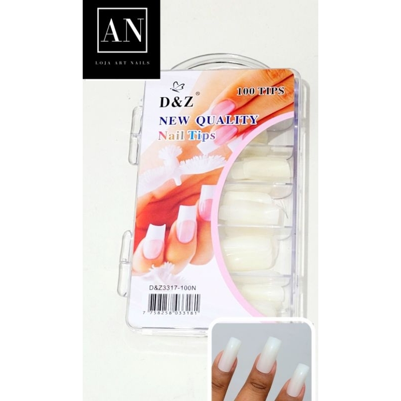 Postiça D&Z Transparente e leitosa. Bailarina, quadrada, TIP C, almond, edge, stiletto, sorriso, vamp. Acrílico tip