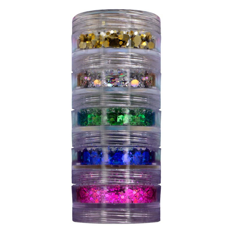 Glitter Glow Power – Kit com 5 Cores Brilhantes | 3 Variações Disponíveis | Para Maquiagem, Unhas, Carnaval e Artesanato