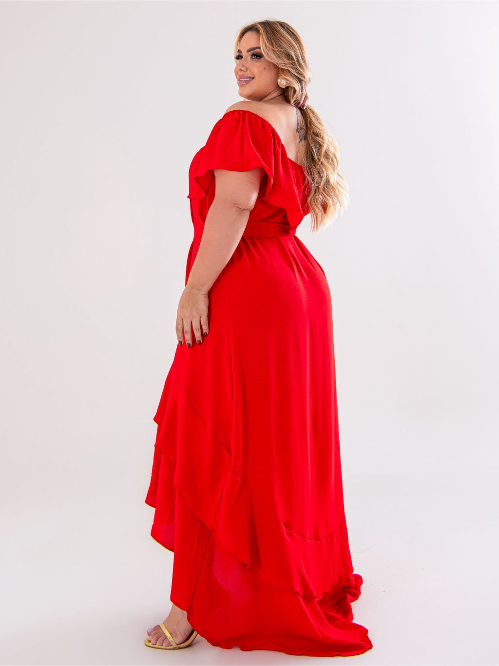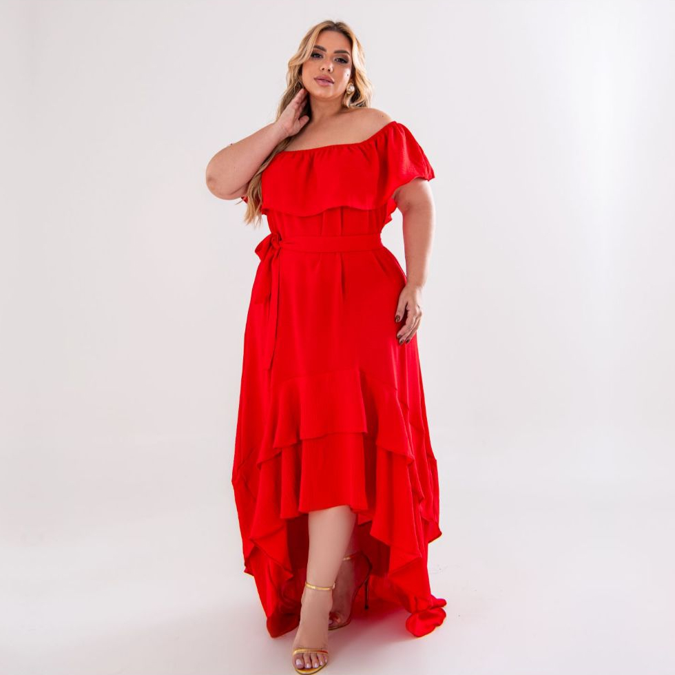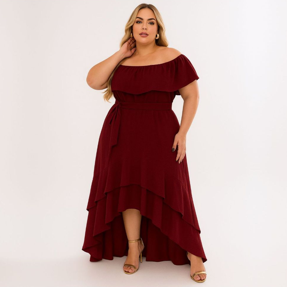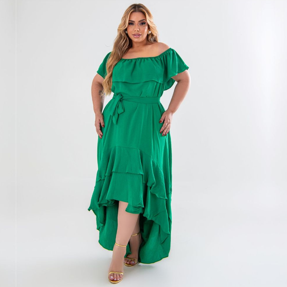 Vestido Longo Vestido Mullet Plus Size Moda Maior Ciganinha Ombro a ombro, cauda de peixe, casual