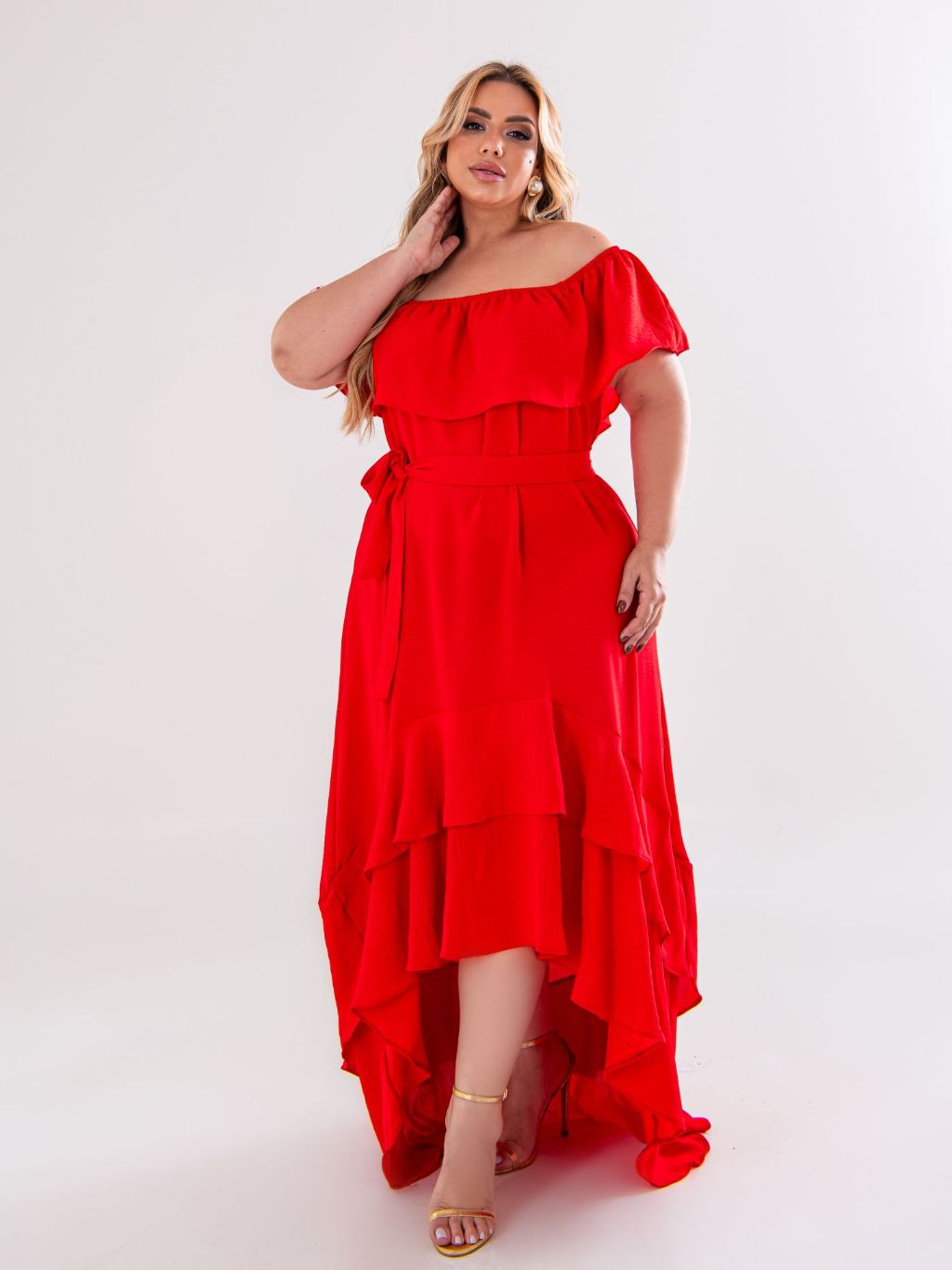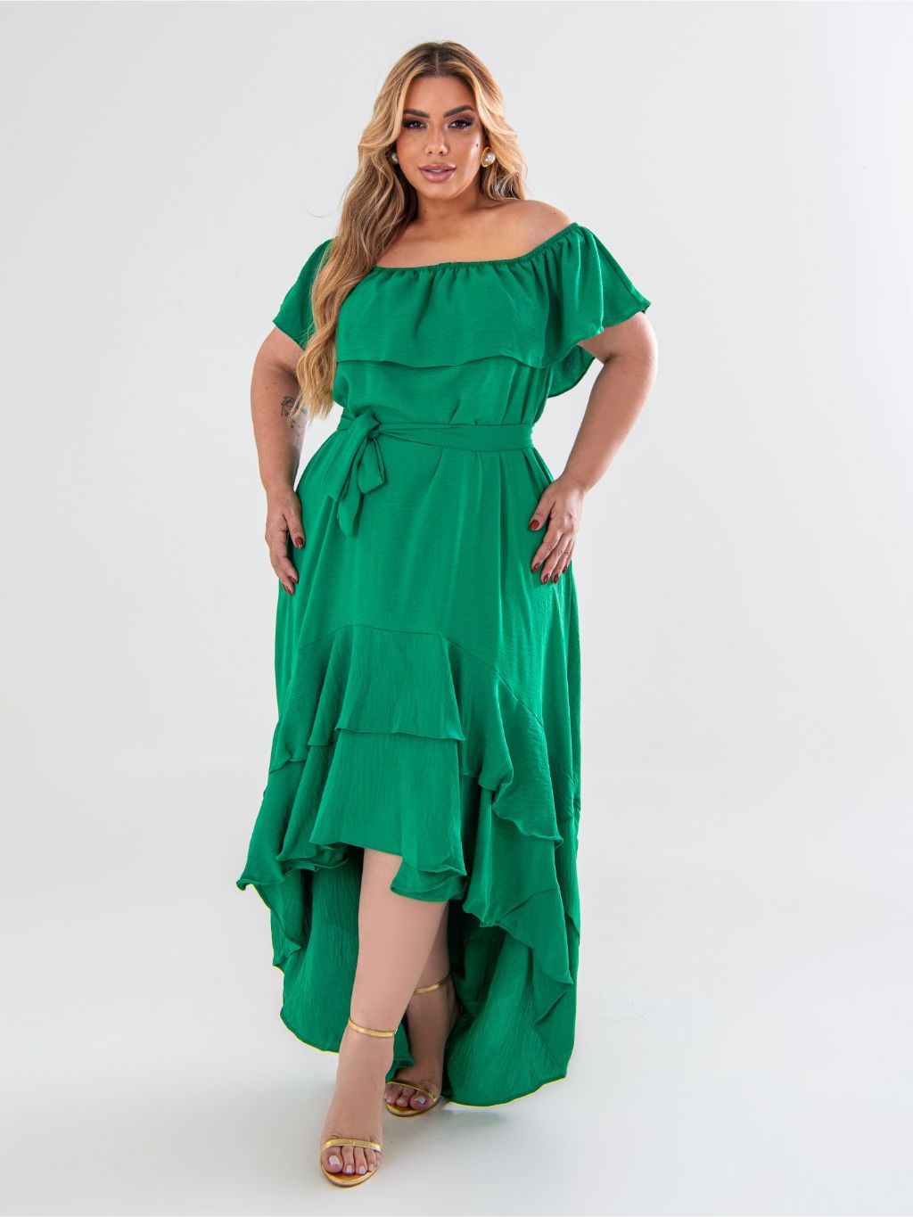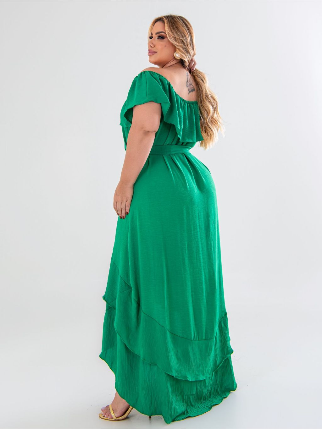 Vestido Longo Vestido Mullet Plus Size Moda Maior Ciganinha Ombro a ombro, cauda de peixe, casual