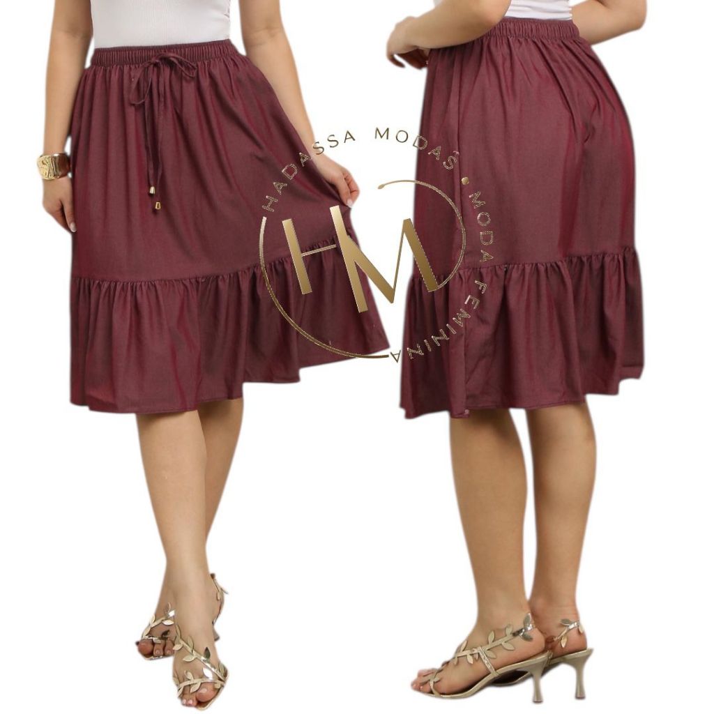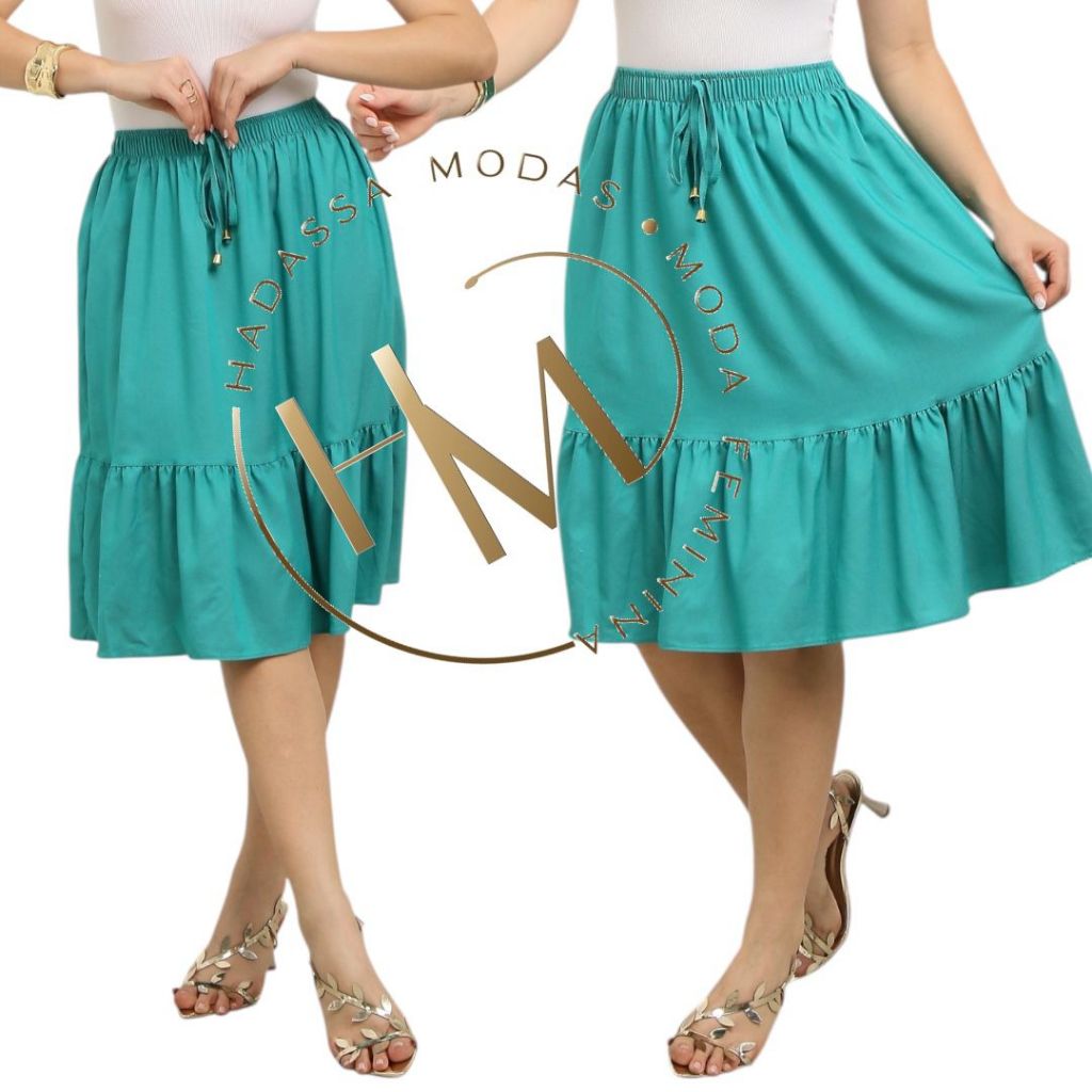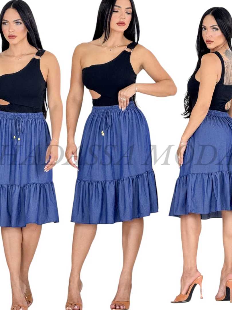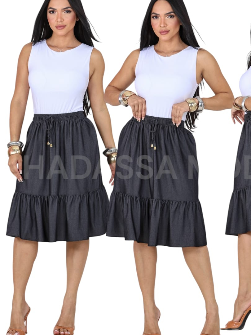Saia Midi Jeans Feminina Casual Moda Evangelica Modesto