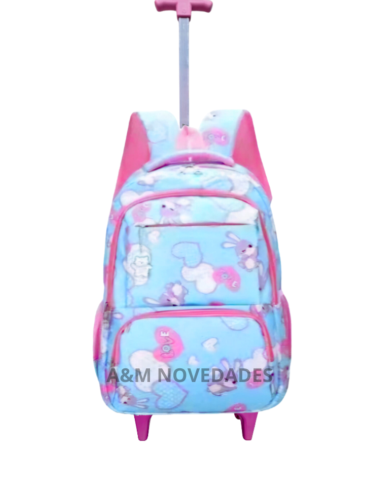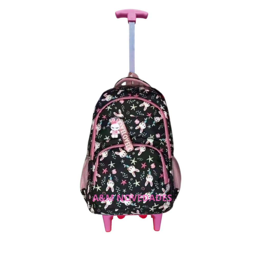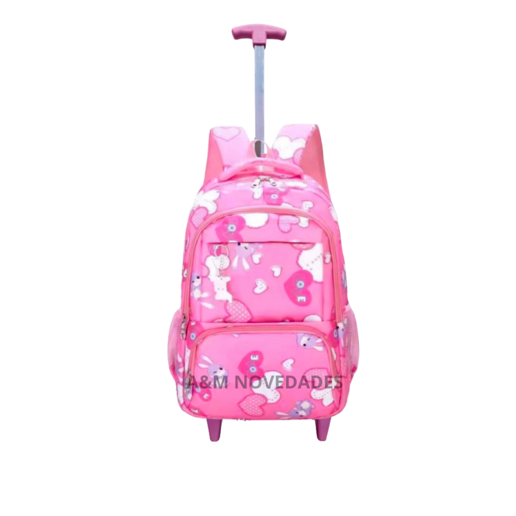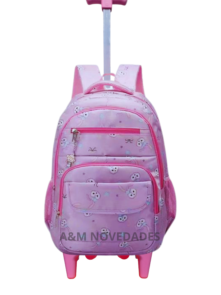 MOCHILA FEMENINA COM RODINHA ESTAMPADO ESCOLAR DE NYLON IMPERMEAVEL TOP