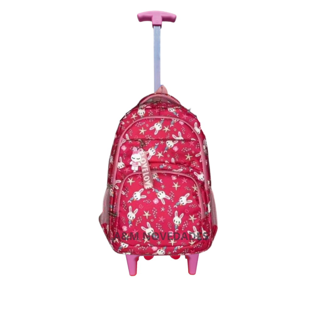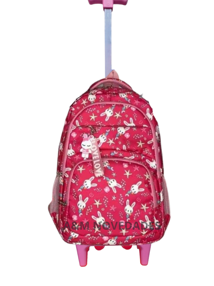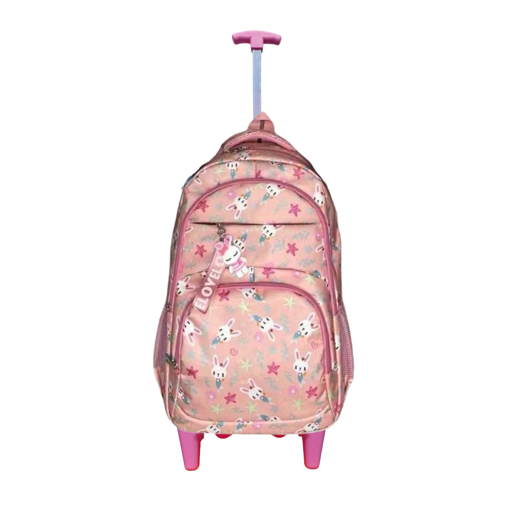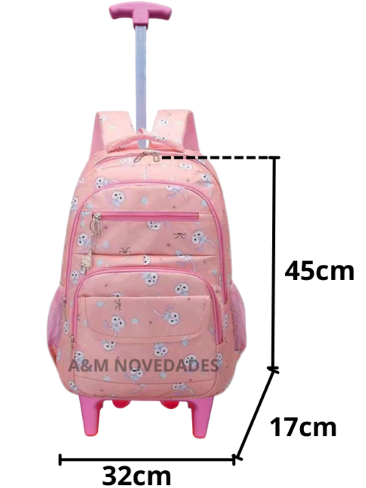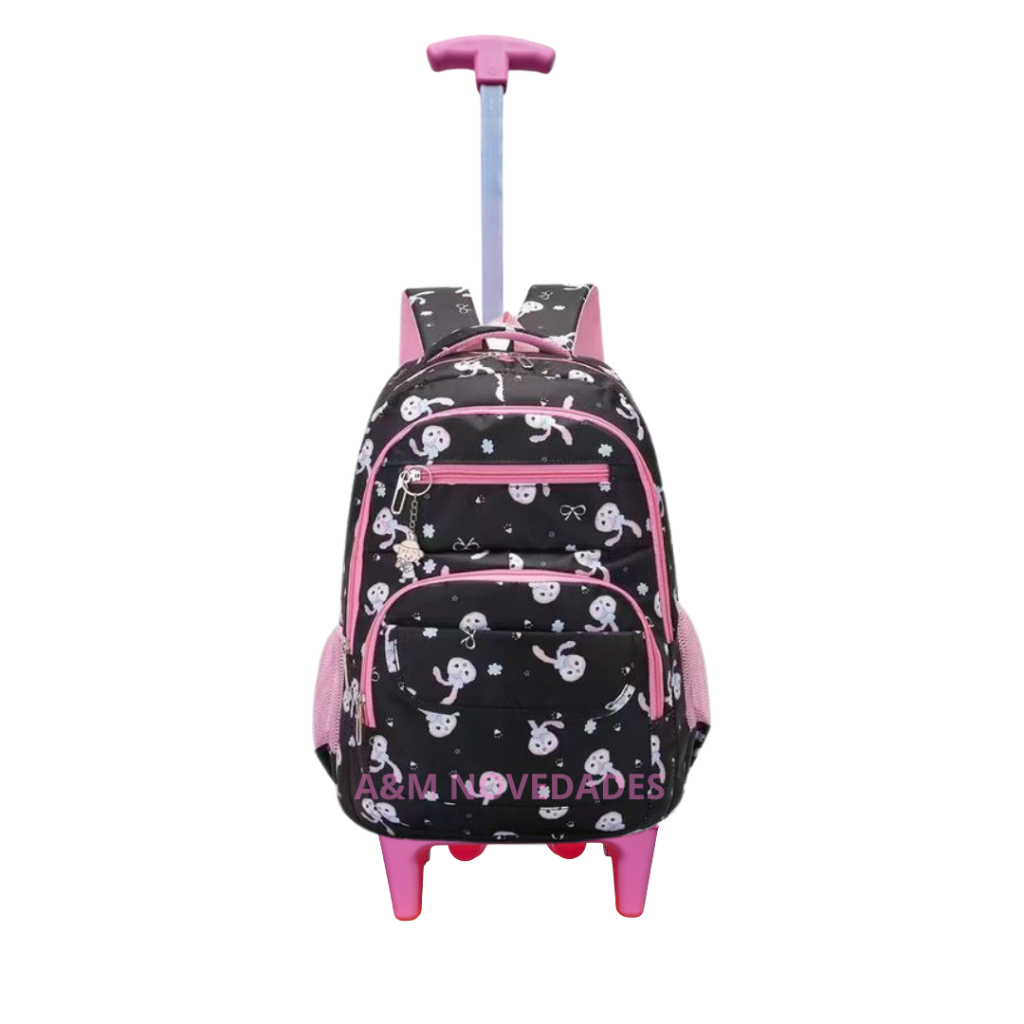 MOCHILA FEMENINA COM RODINHA ESTAMPADO ESCOLAR DE NYLON IMPERMEAVEL TOP
