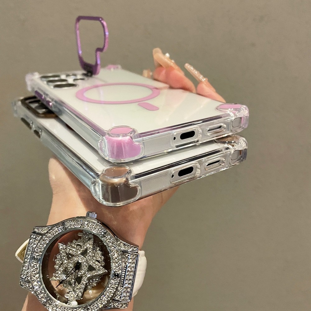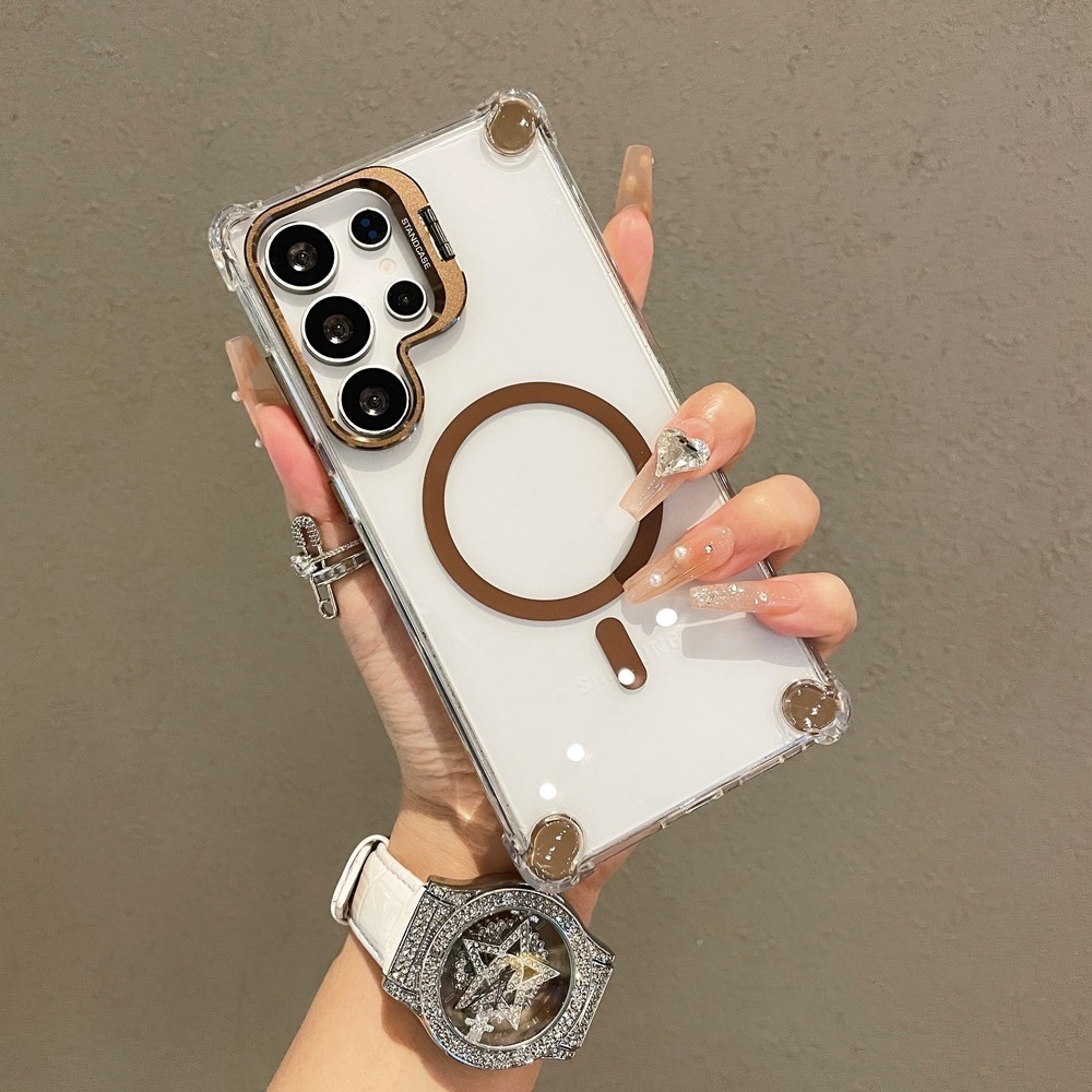 Com Suporte De Lente De Metal Capa De Telefone Magnética À Prova De Choque Para Samsung Galaxy S25 S24 S23 S22 Ultra S24