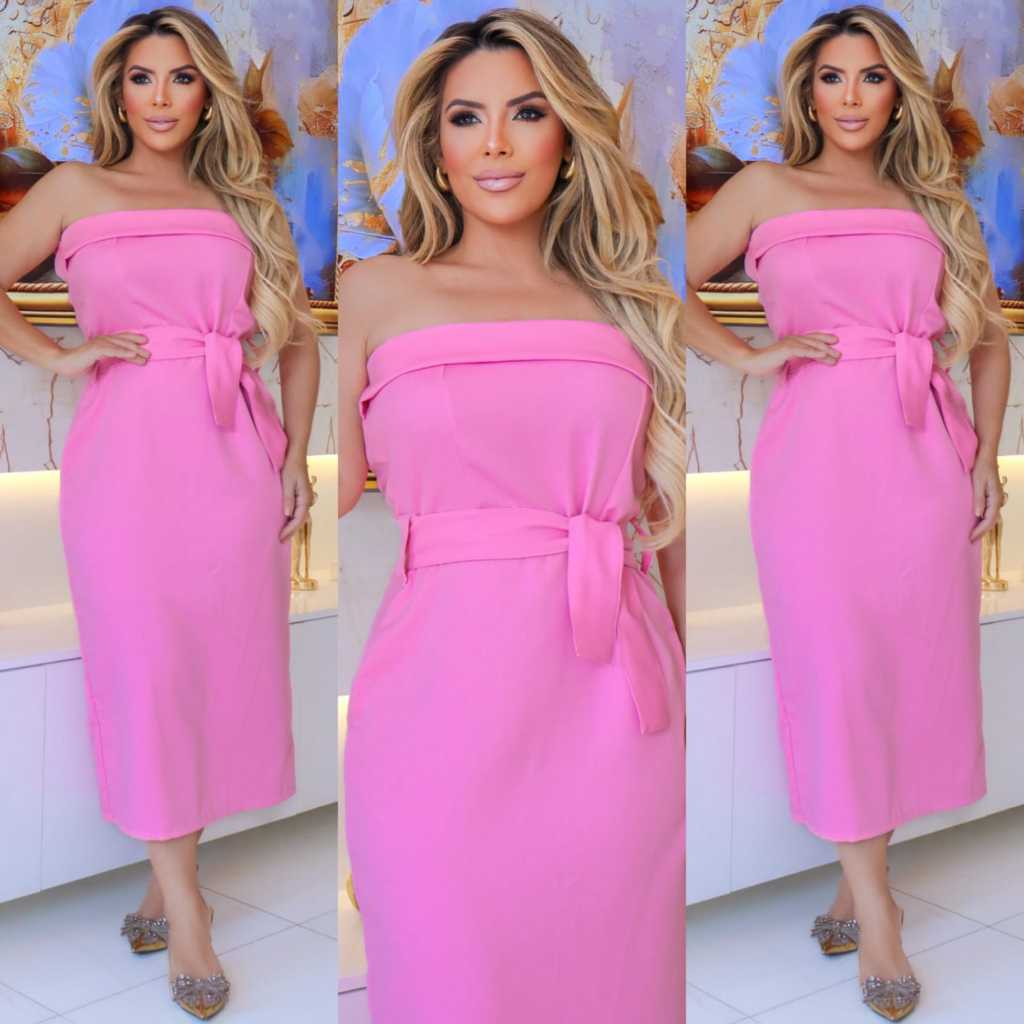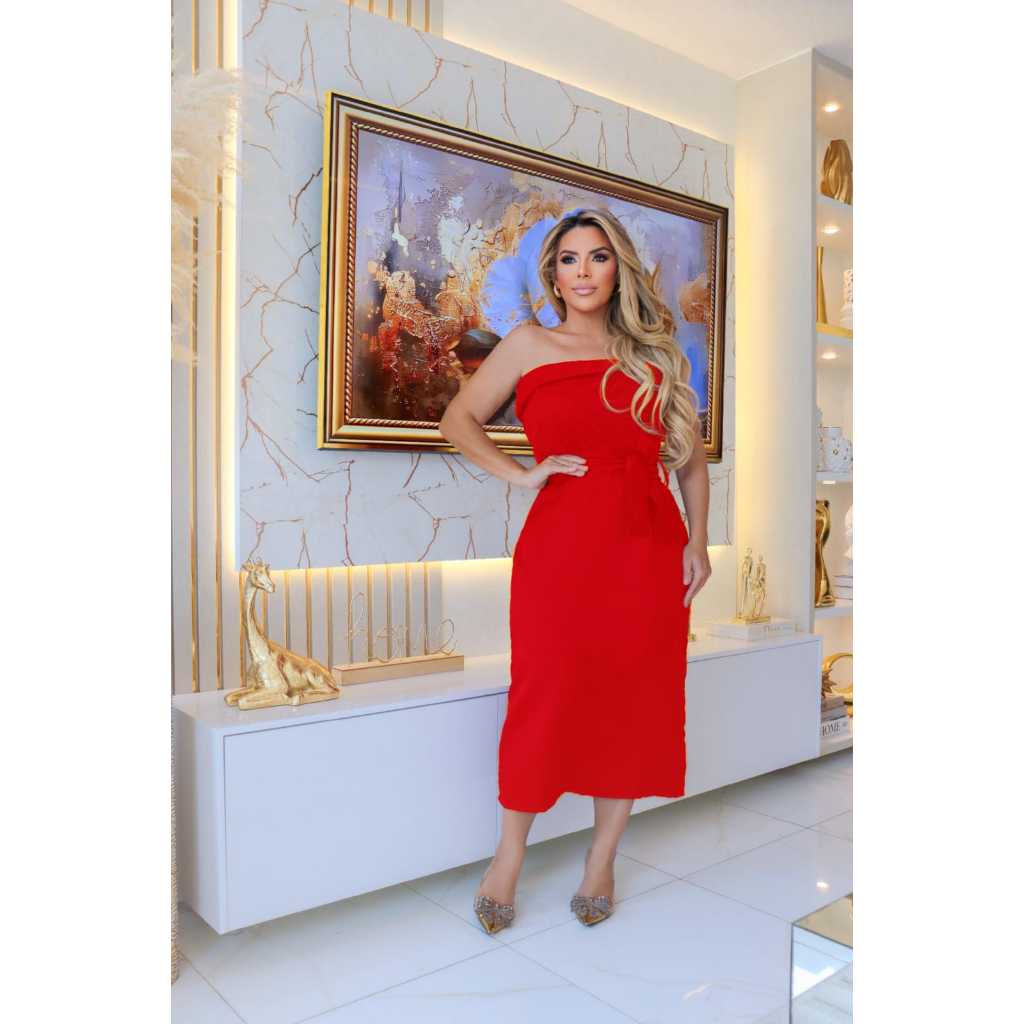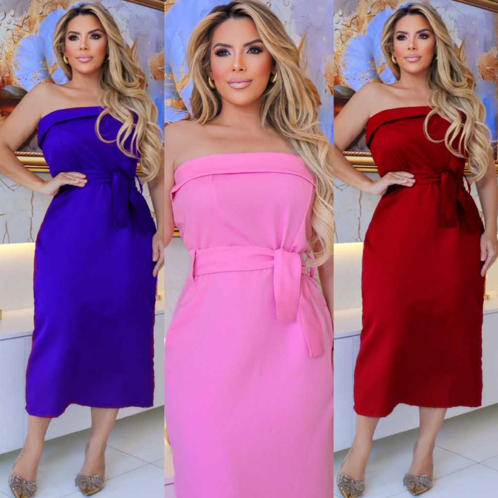 Vestido Midi Alfaiataria Tomara que Caia Moda Evangélica Executiva Luxo com Cinto (REF 63)