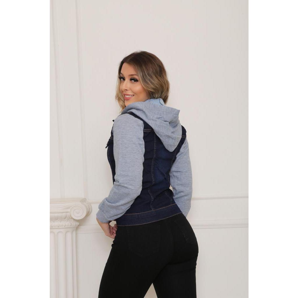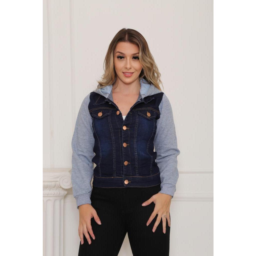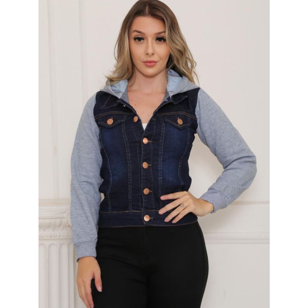 Jaqueta Jeans Feminina Com Moletom