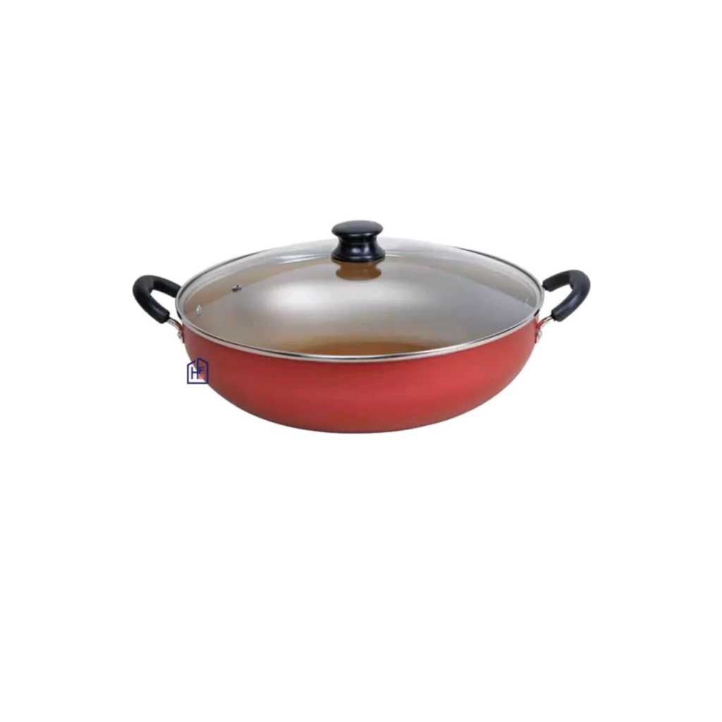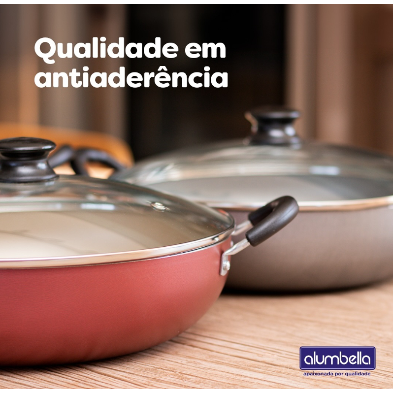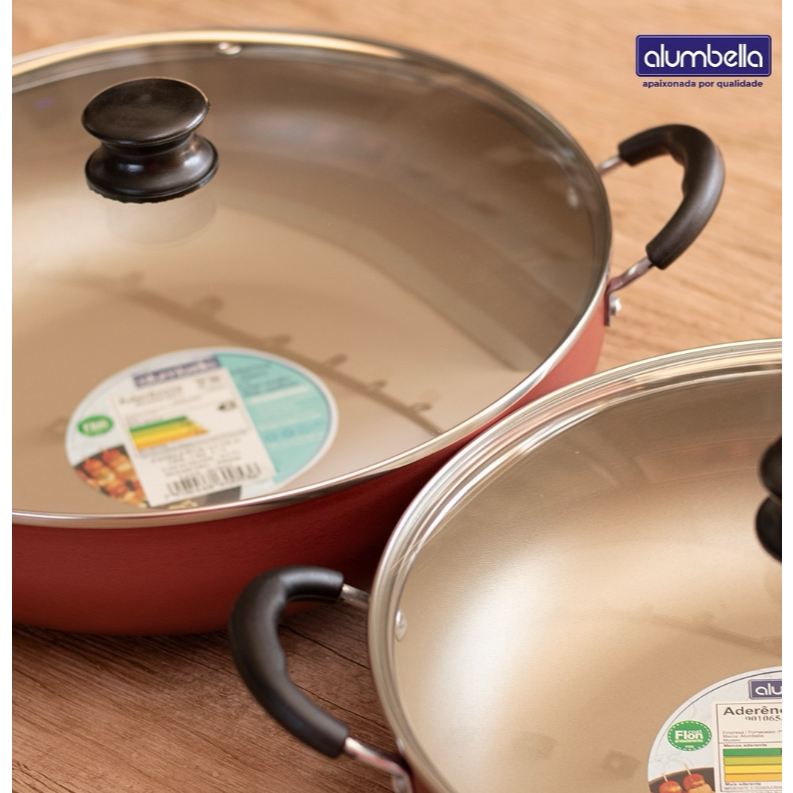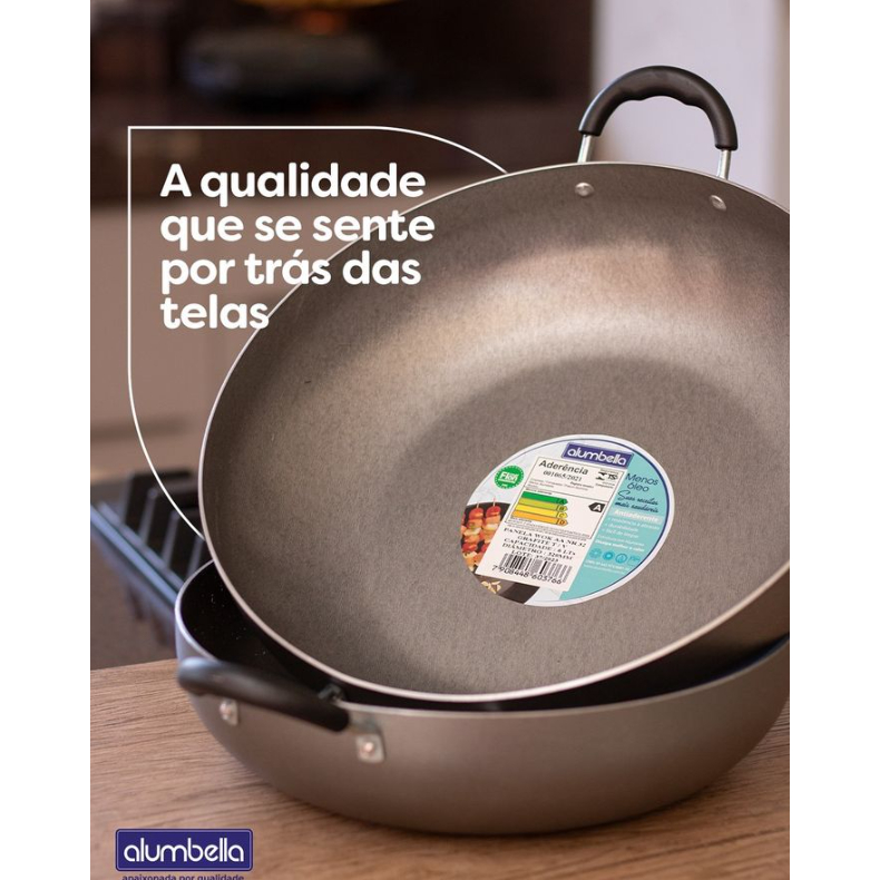 Panela wok Antiaderente Com Tampa De Vidro 32 Cm Alumbella 6 litros