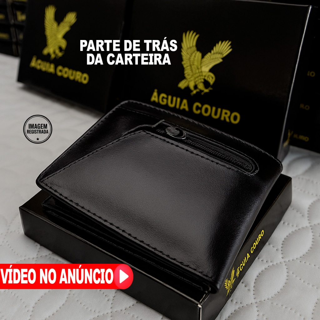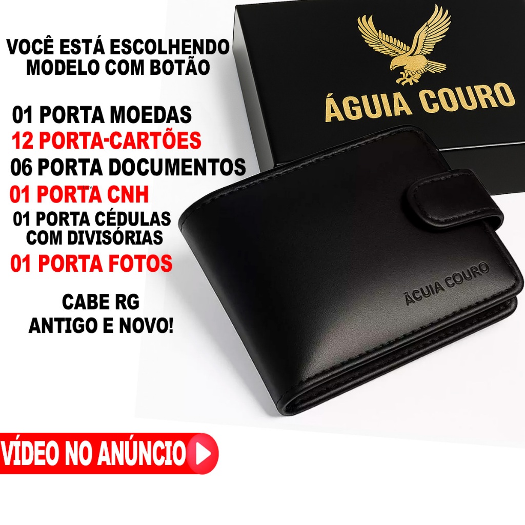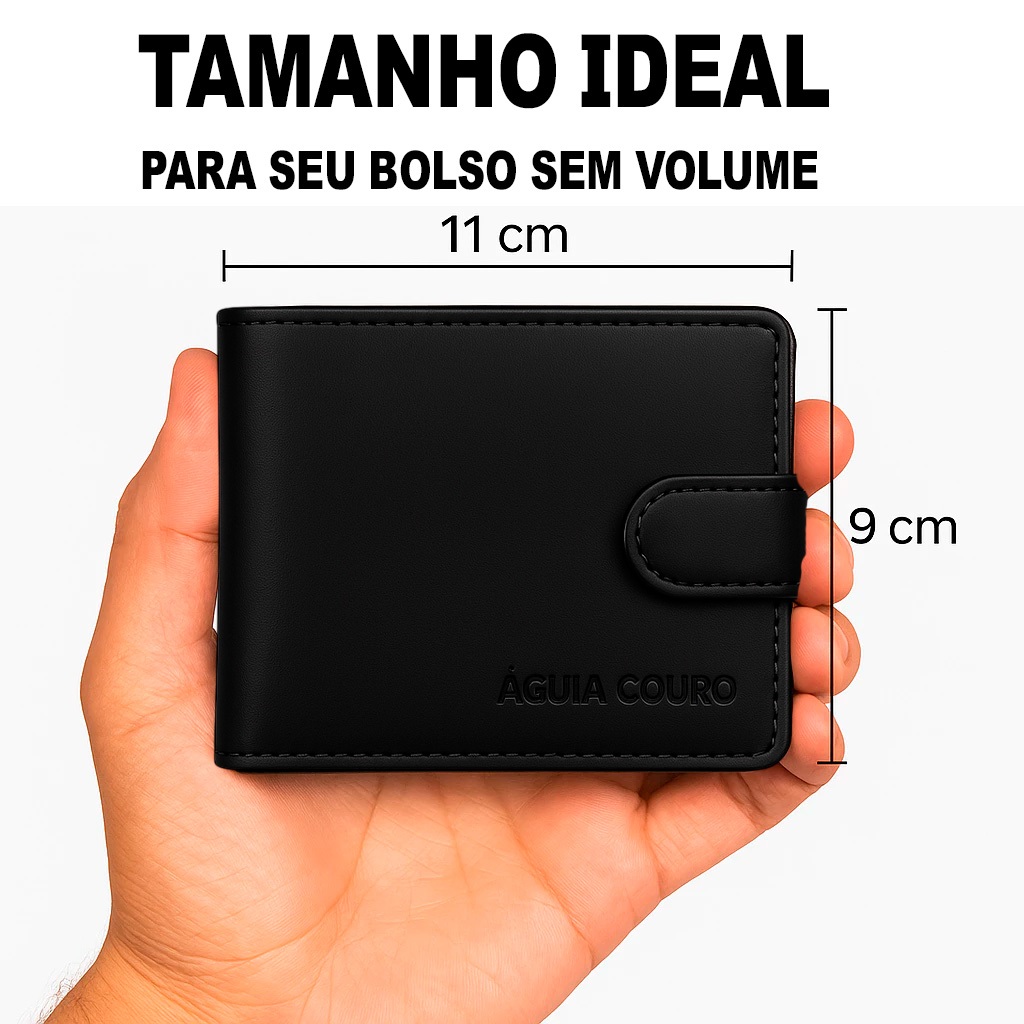 carteira masculina couro 100% Legitimo com fecho botão pressão a mais completa do mercado preta
