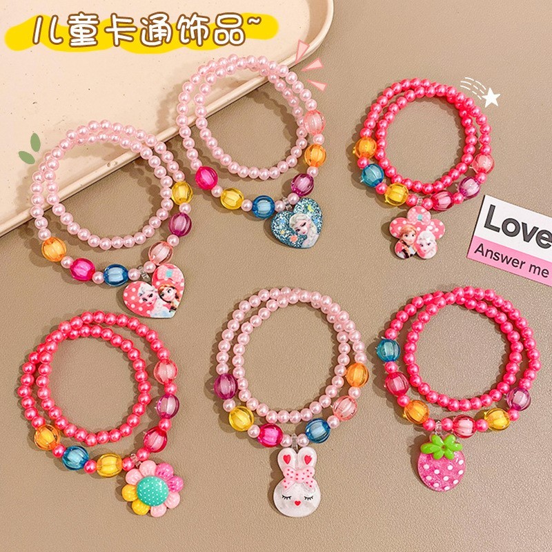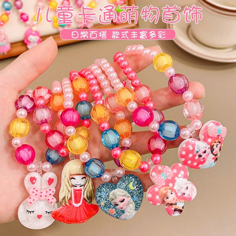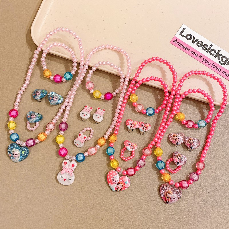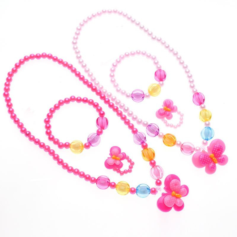 Kit 6 Colares 6 Pulseiras Infantil Flor Borboleta e Laço de Miçangas Pérola Bijuterias