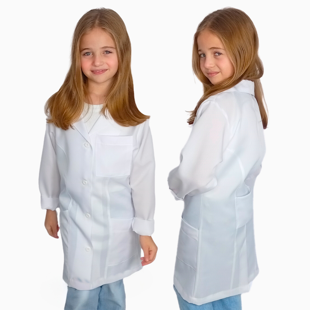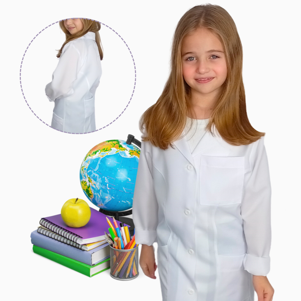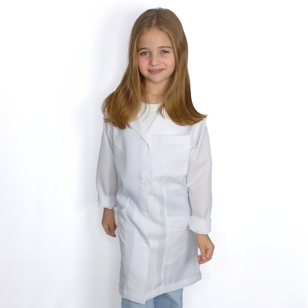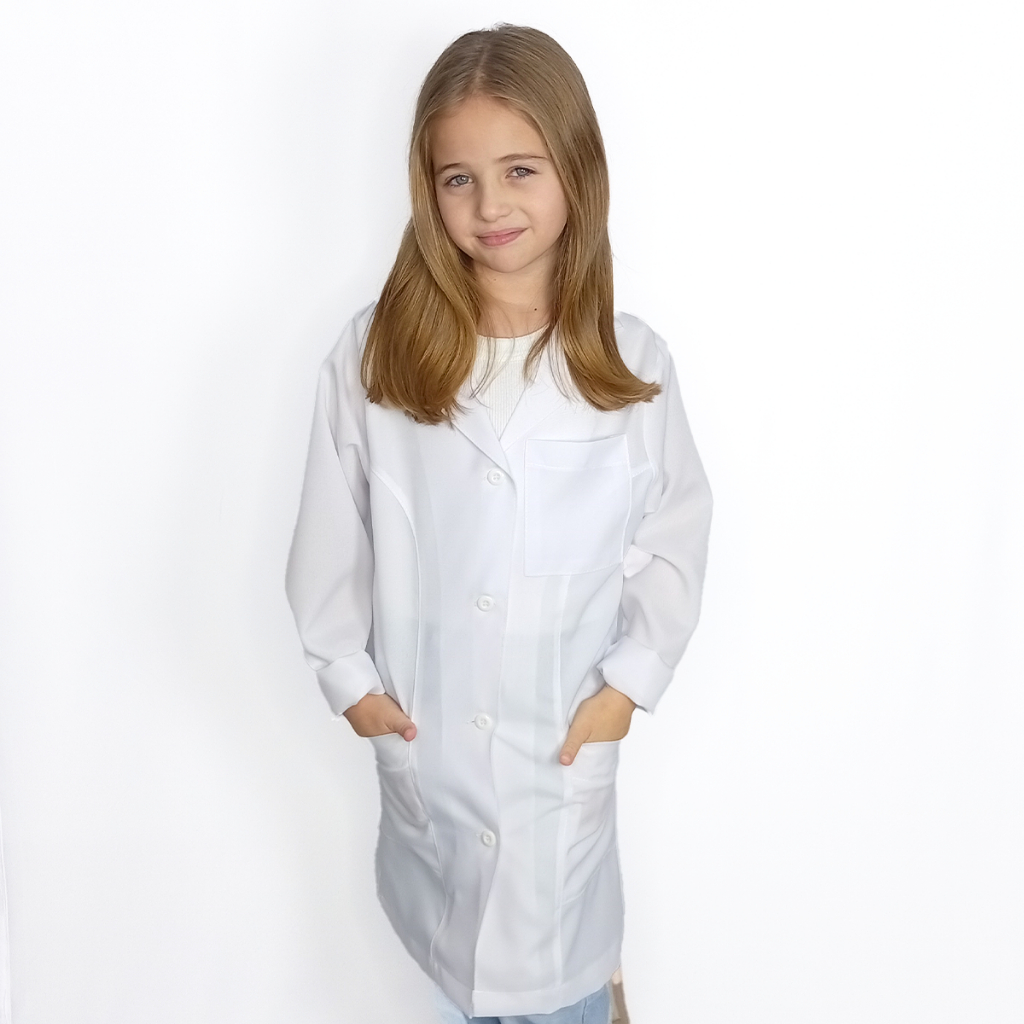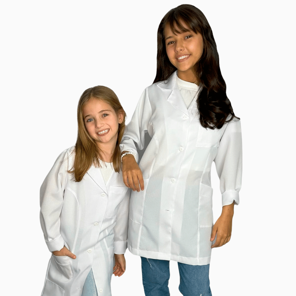 Jaleco Avental Branco Infantil Feminino Acinturado Escolar Laboratório Manga Longa