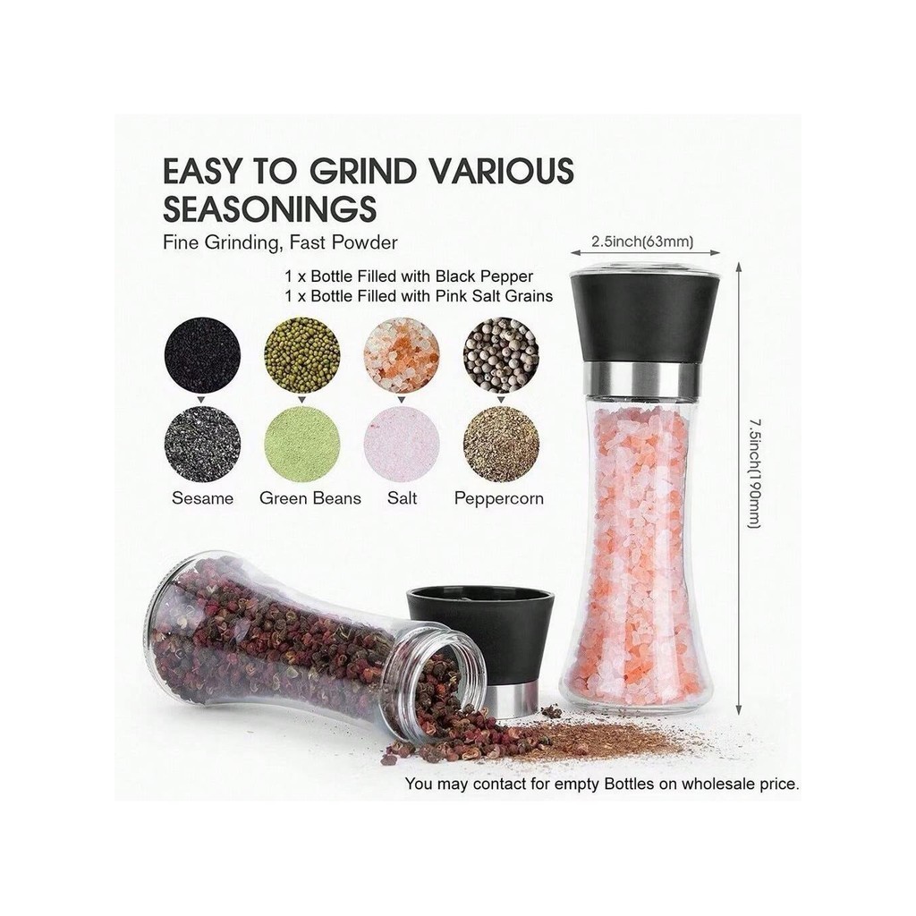 Moedor De Sal E Temperos Especiarias Pimenta Sal Em Vidro Premium