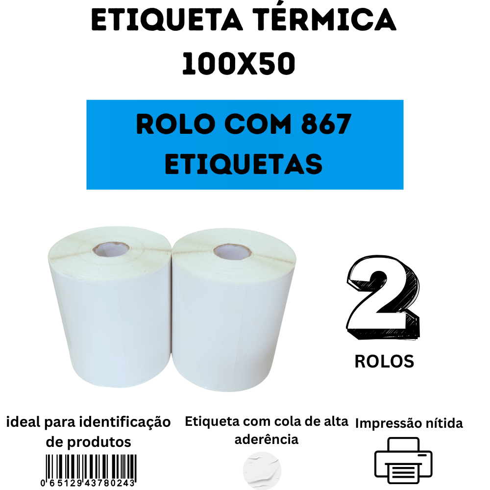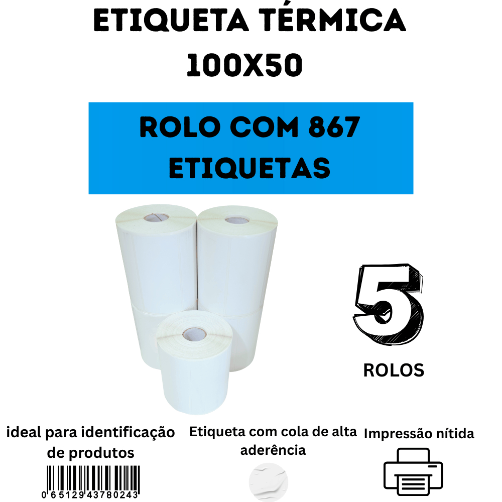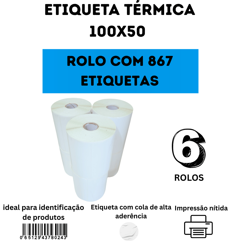 Kits 1 a 6 Rolos etiqueta Térmica Adesiva 100x50 (10x5)