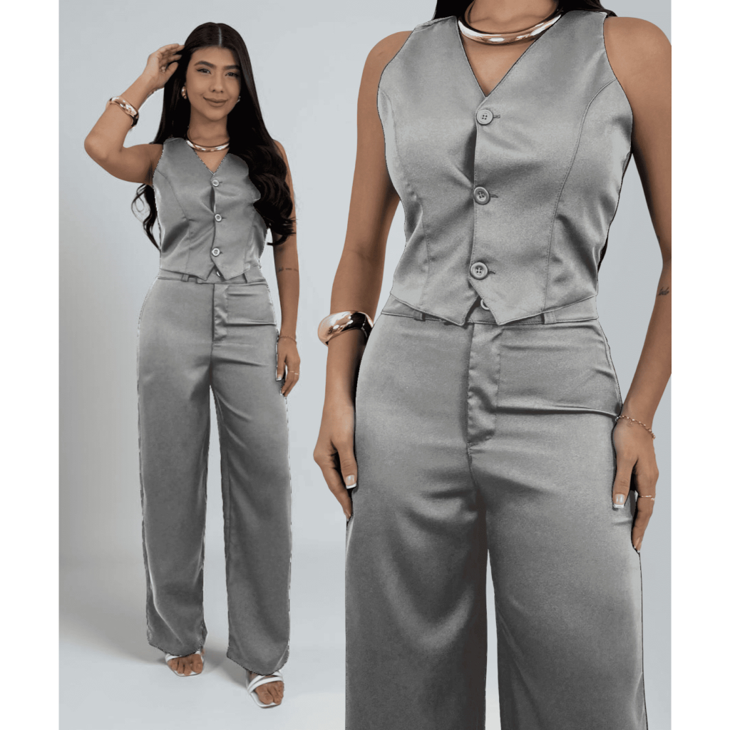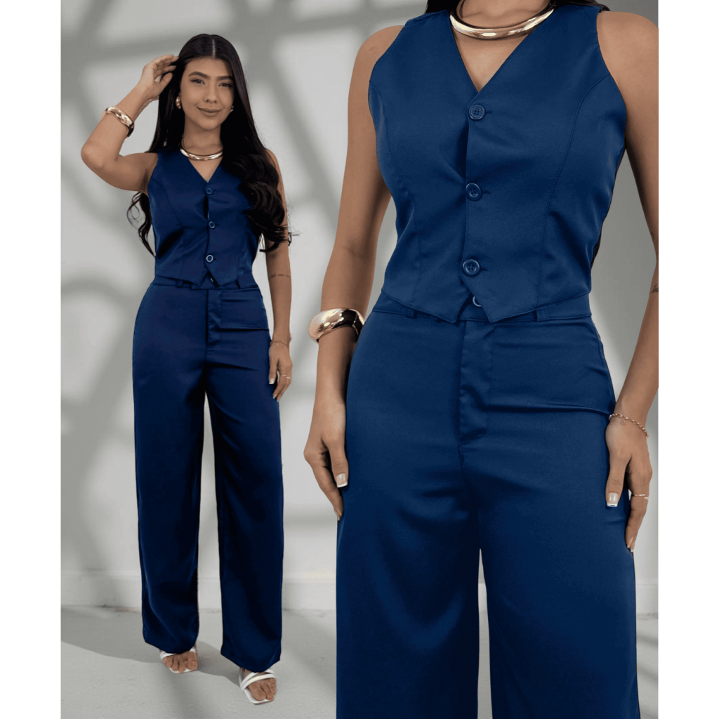 Conjunto Alfaiataria Liso Social Pantalona Trabalho Elegante