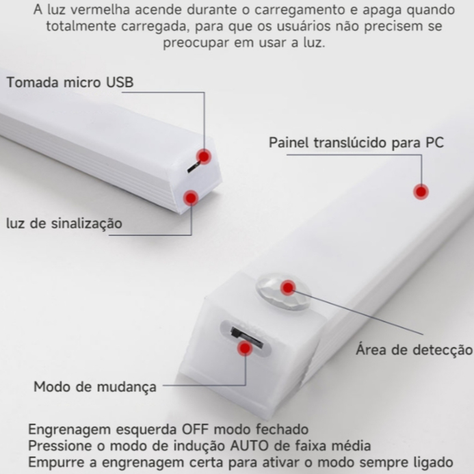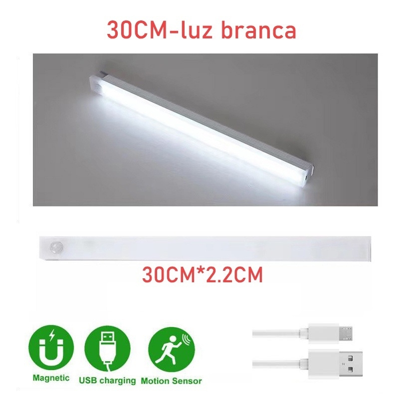 50/30/20CM Luzes Recarregáveis com Sensor de Movimento para Baixo do Armário Luz Noturna USB Sem Fio
