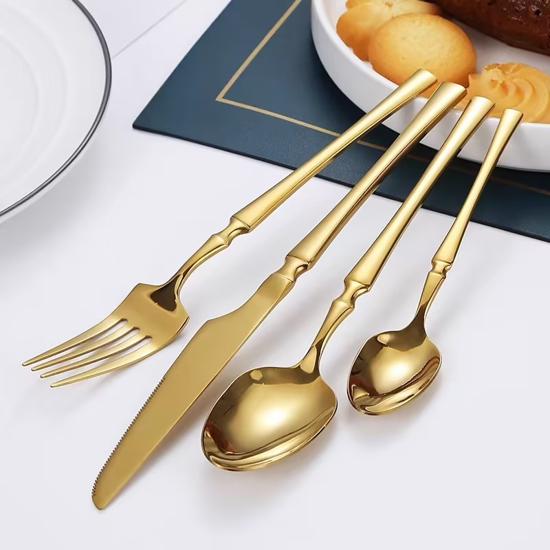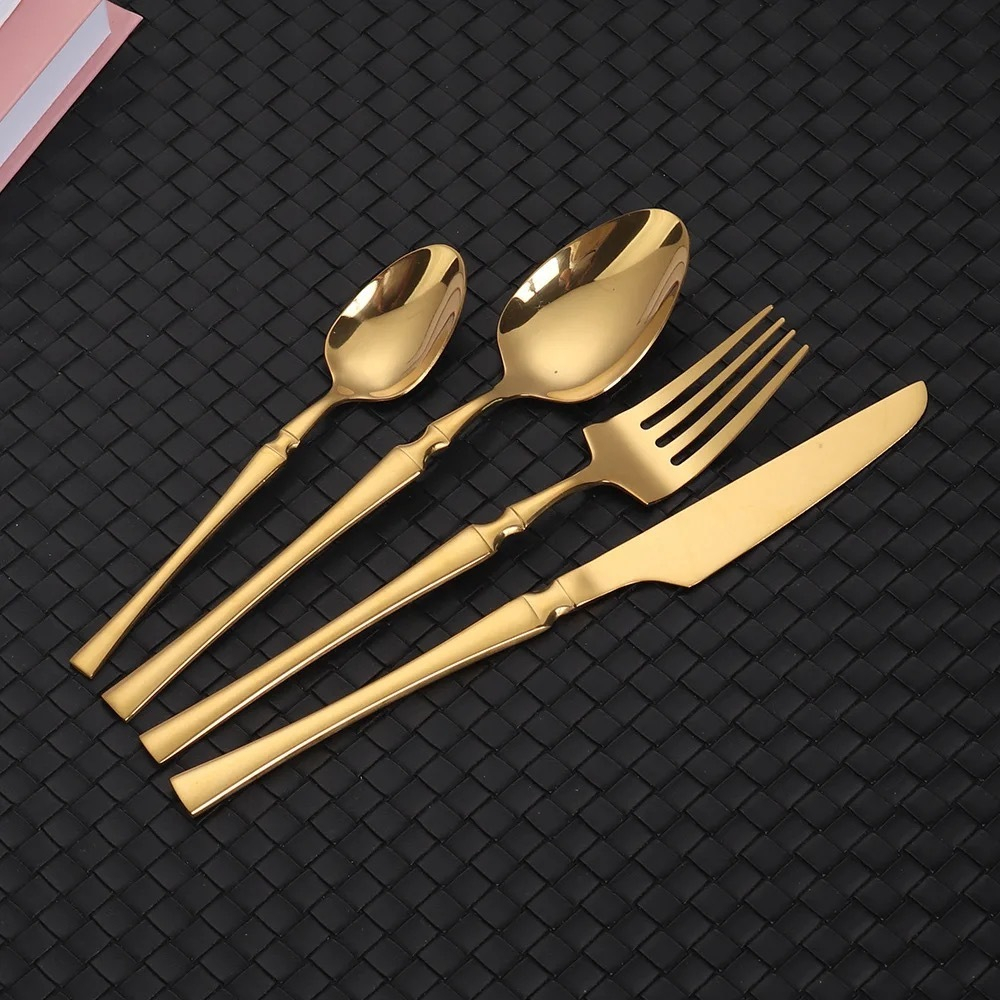 Kit 24 Jogo De Talheres Aço Inoxidável 416 Cintura Fina Dourado