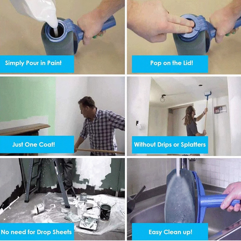 Rolo de Pintura Mágico com Reservatório 500ml Antirrespingos + 72 cm Cabo