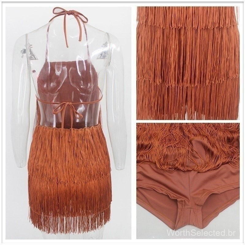 GLCHENG Tobinoone Franja Vestido De Verão Mulheres De Uma Peça Sem Encosto Mini Casual Clube Sexy Franja Vestido Bandage