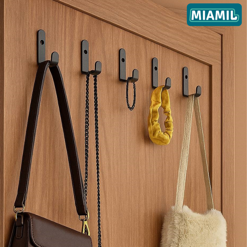 Kit 5 Ganchos de Parede Multiuso - Suporte Organizador Aço Preto Fosco | Toalhas, Chaves, Vasos