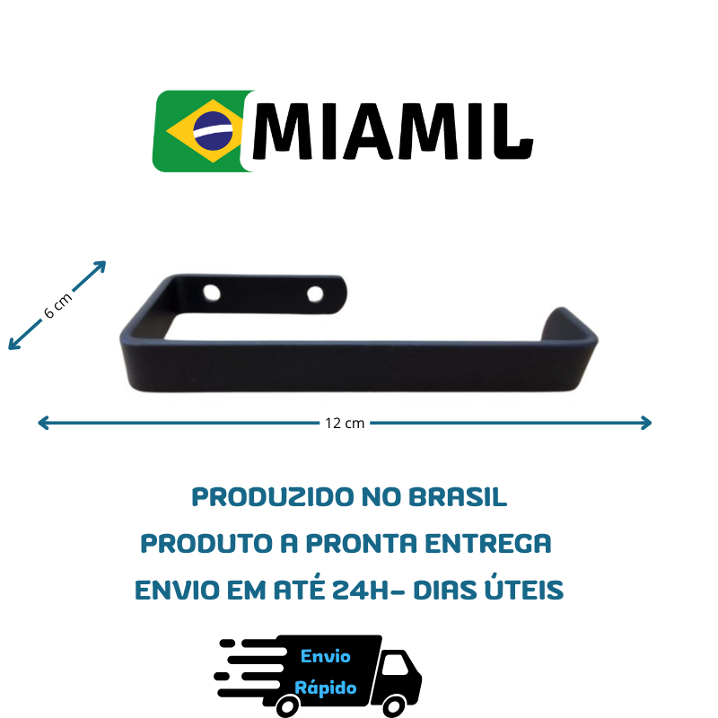 Suporte de Banheiro Porta Papel Higiênico Preto Estilo Industrial Linha Classic MIAMIL