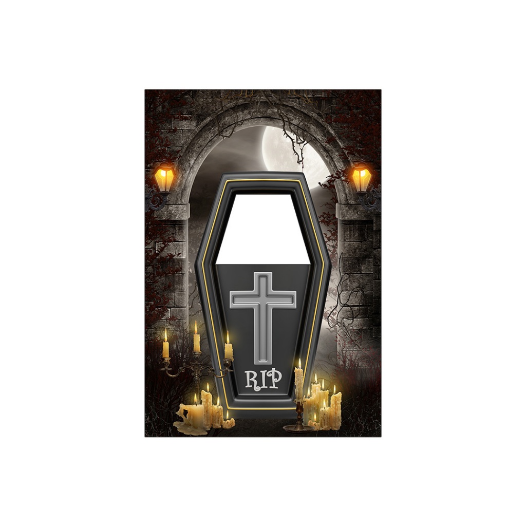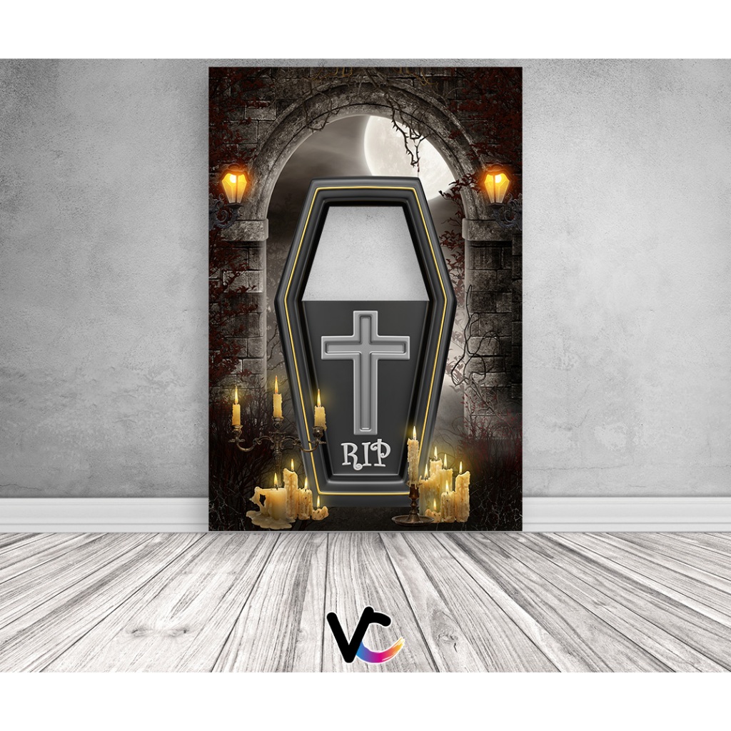 Painel De Festa Vertical Interativo 1,50x2,20 - Halloween Caixão Rip 034