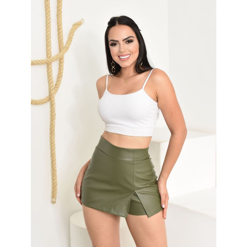 Short saia couro ecologico fake tendencia inverno lancamento 2025