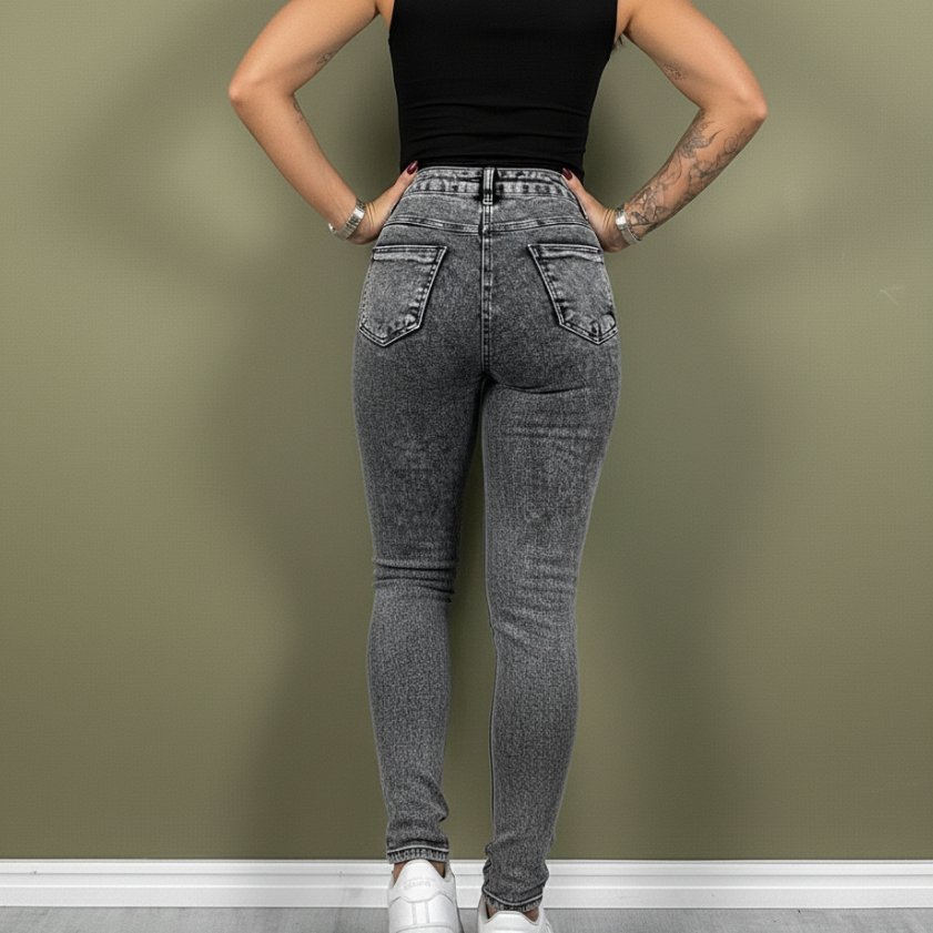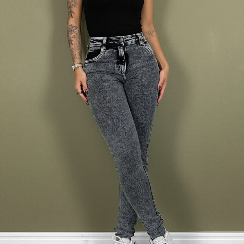 Calça Jeans Preta Cinza Feminina Skinny Cintura Alta com Lycra Levanta Bumbum