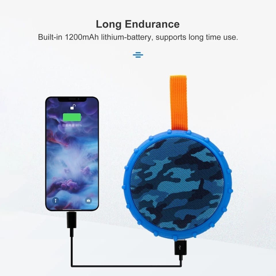Caixa de Som Bluetooth 5W à Prova d’Água, Portátil com Gancho, USB, MP3, Ideal para Banheiro, Praia e Exterior