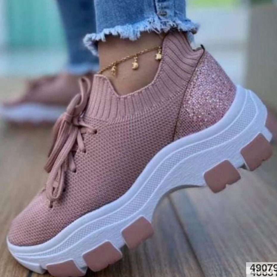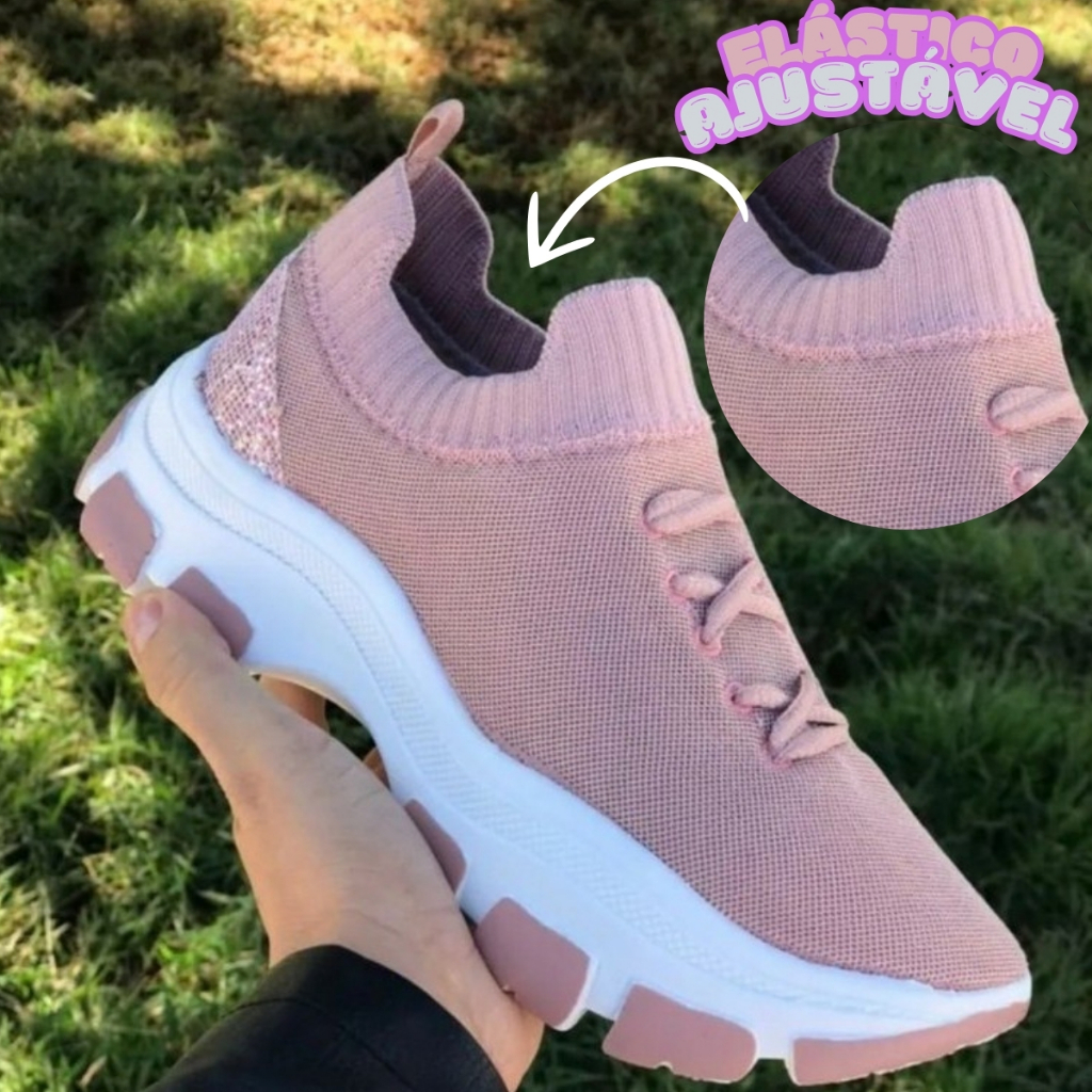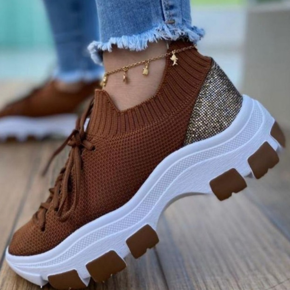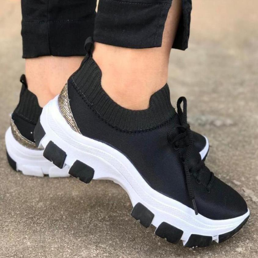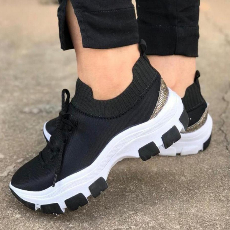 Tênis Chunky Feminino Meia Plataforma Ilhabela Confortável Com Cadarço
