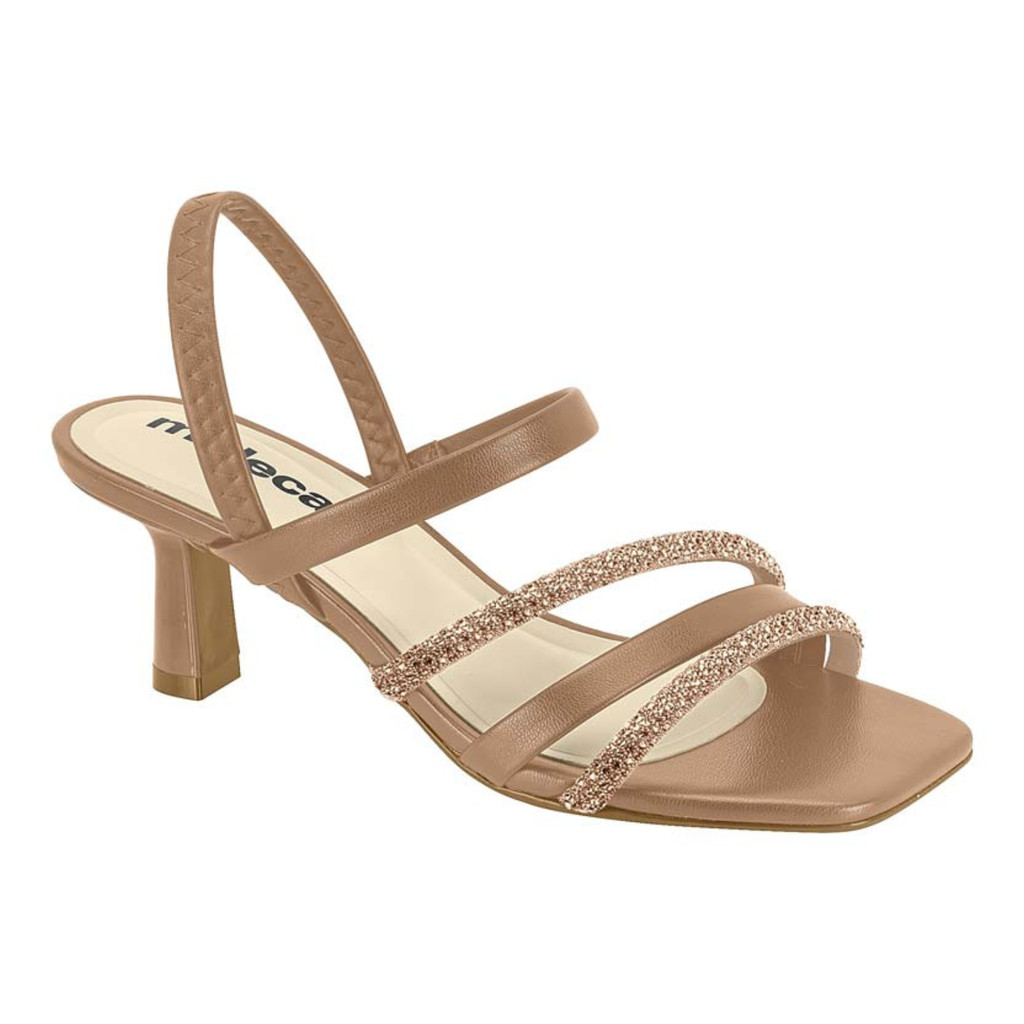 Sandália Feminina Moleca Salto Fino Médio Stras Casual Festa
