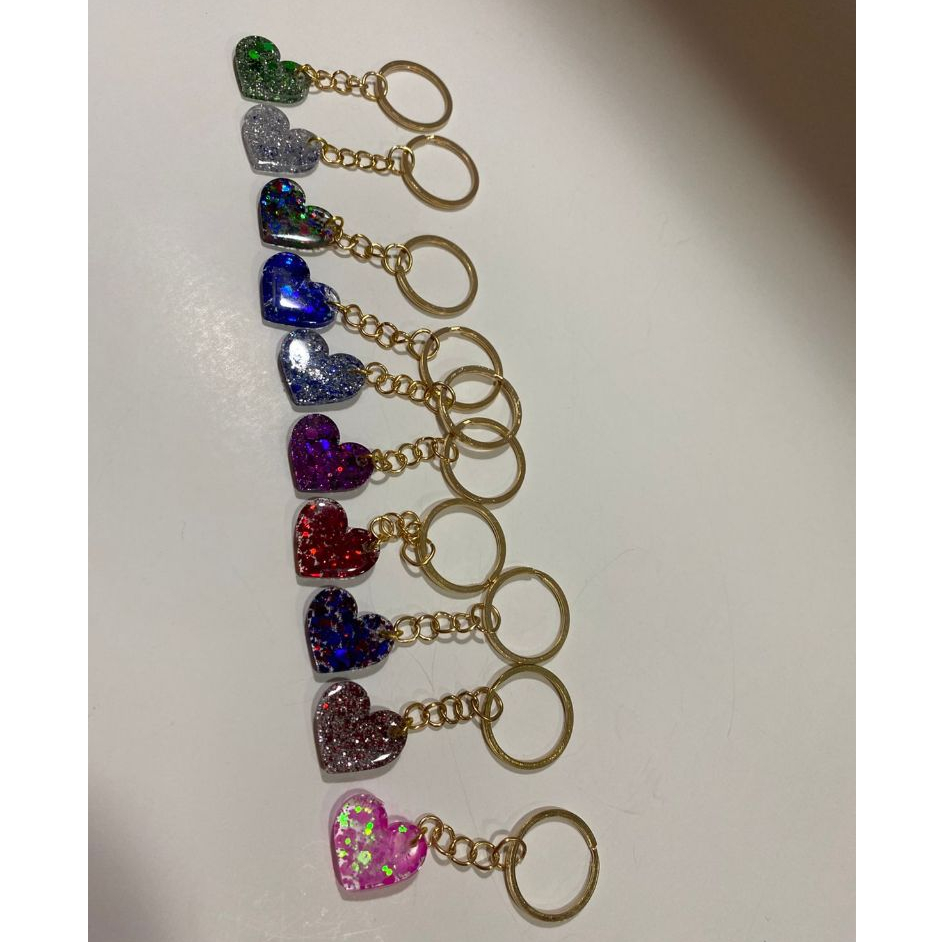 KIT 10/20/30 /40 UNID CHAVEIROS DE CORAÇÃO EM RESINA CORES SORTIDAS