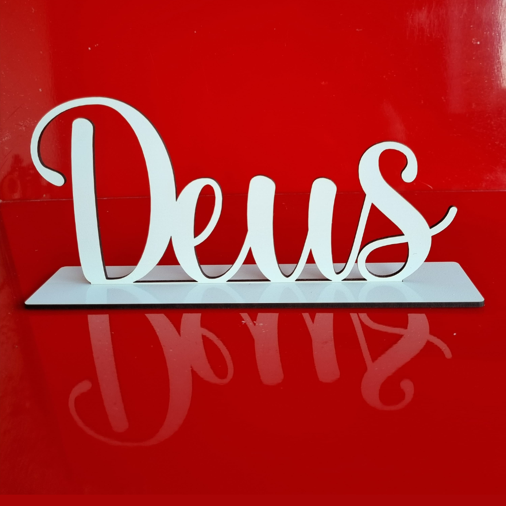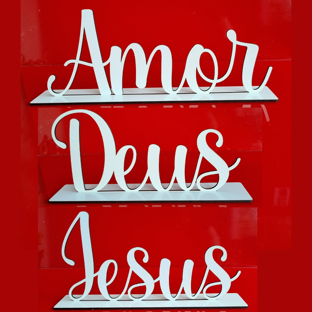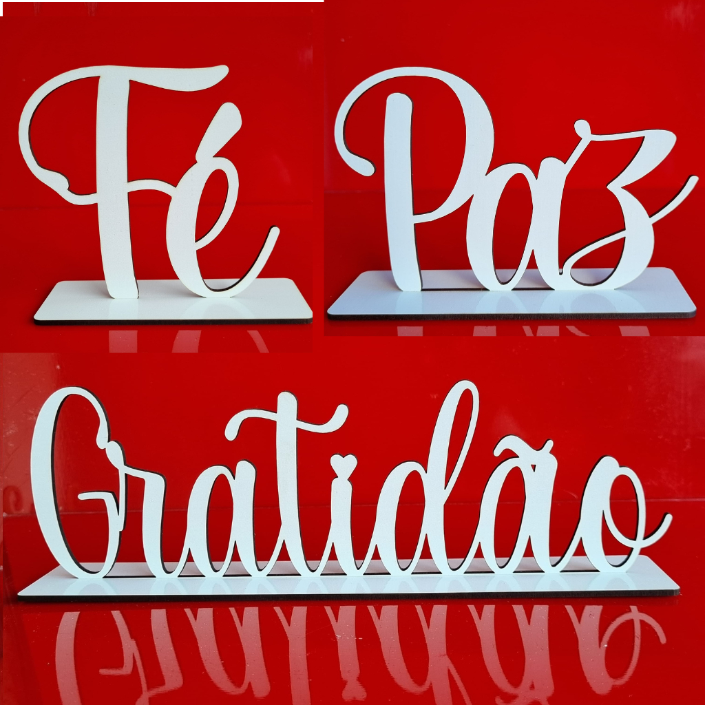 Kit C/3 Palavras de Mesa Gratidão Família Fé Em MDF Branco