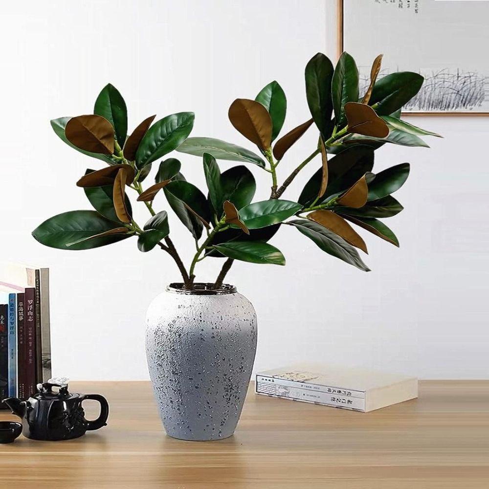 DAYZLM Simulado Ramo De Árvore De Magnólia , Folhas De Borracha 2 Garfos Planta Artificial , Grande