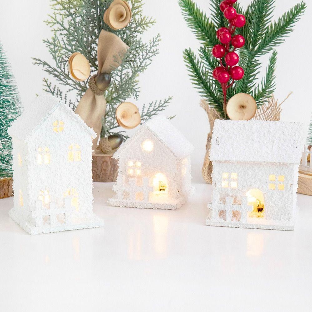 CHOFI Christmas LED Light House , Mini Castelo Luminoso Brilhante , Criativo Com Snowflake White Desktop