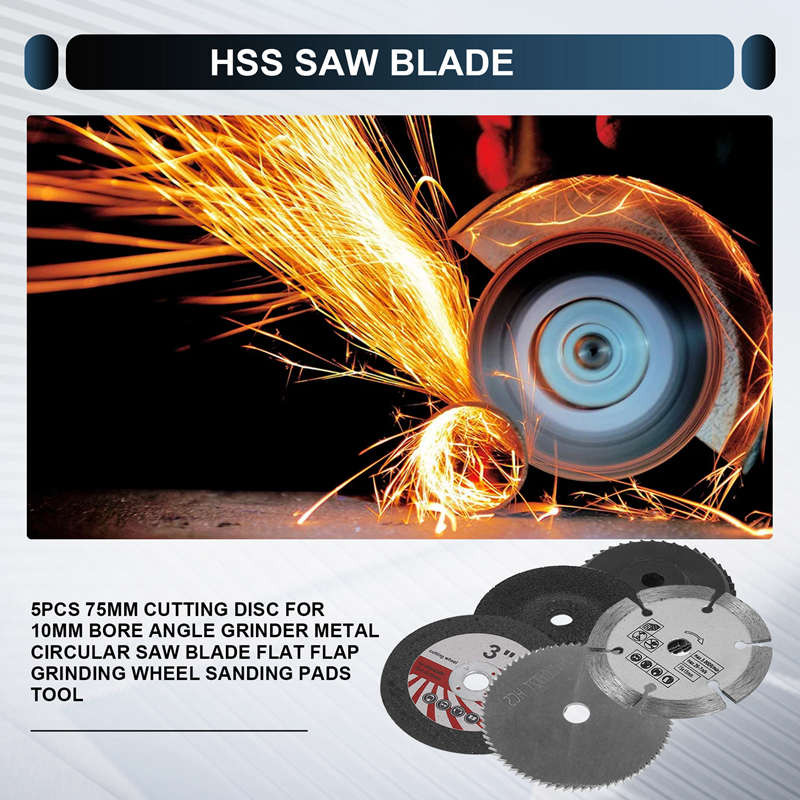 5 Pçs 75mm Disco De Corte Para 10mm Furo Ângulo Moedor Metal Circular Lâmina Serra Plana Aleta Rebolo Lixar Almofadas Fe
