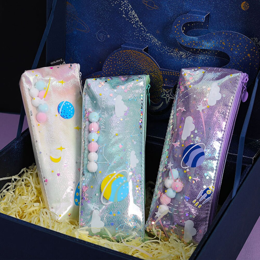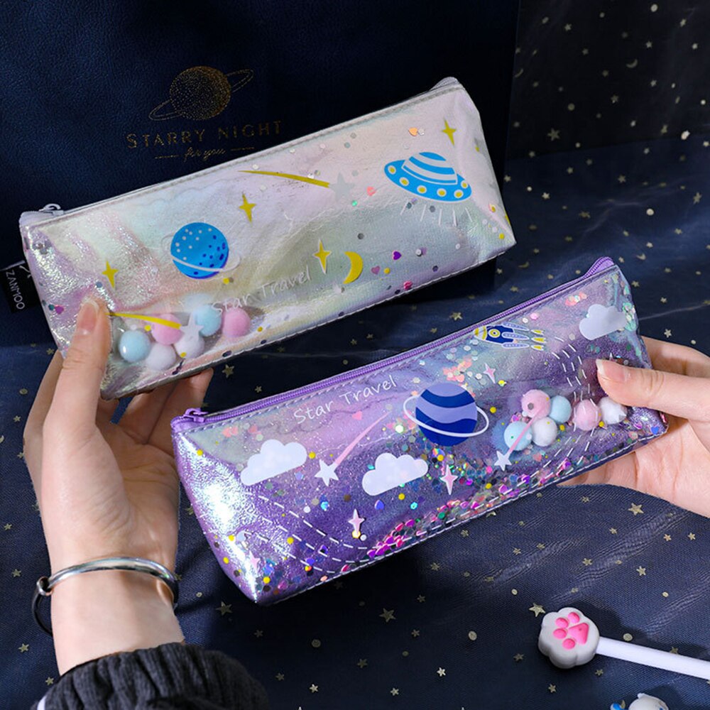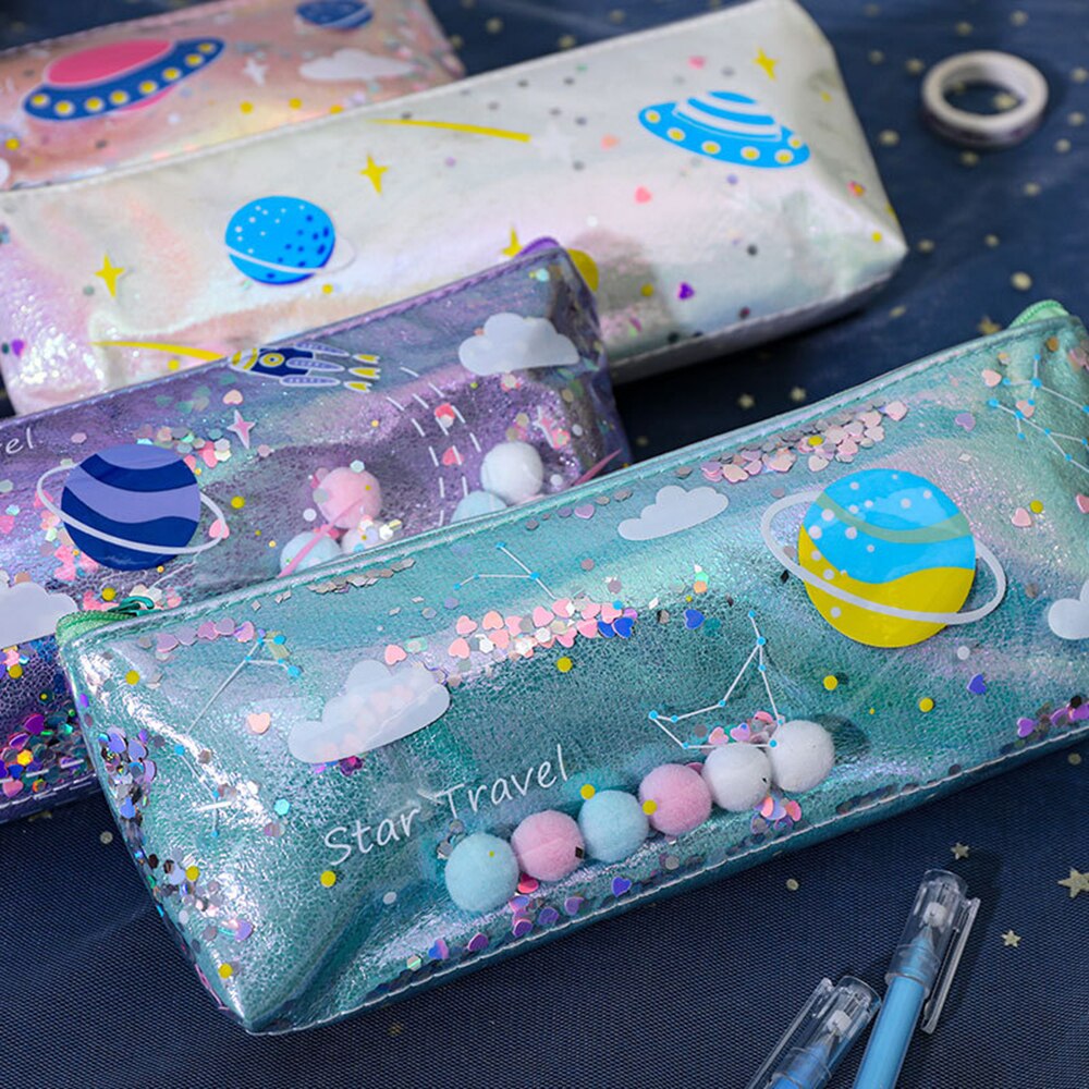 1Pcs Estojo Planetário De Lápis De Areia Movediça Brilhante Suprimentos De Papelaria