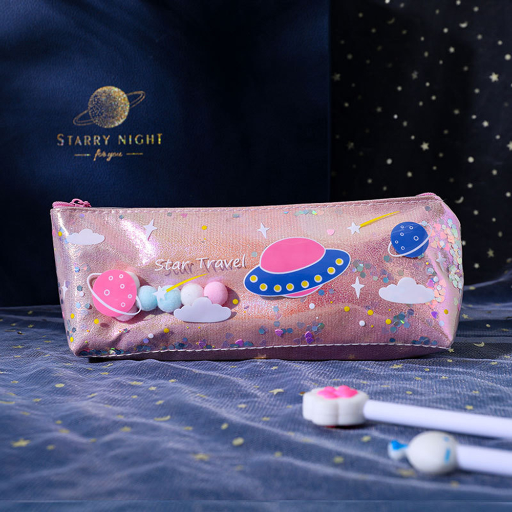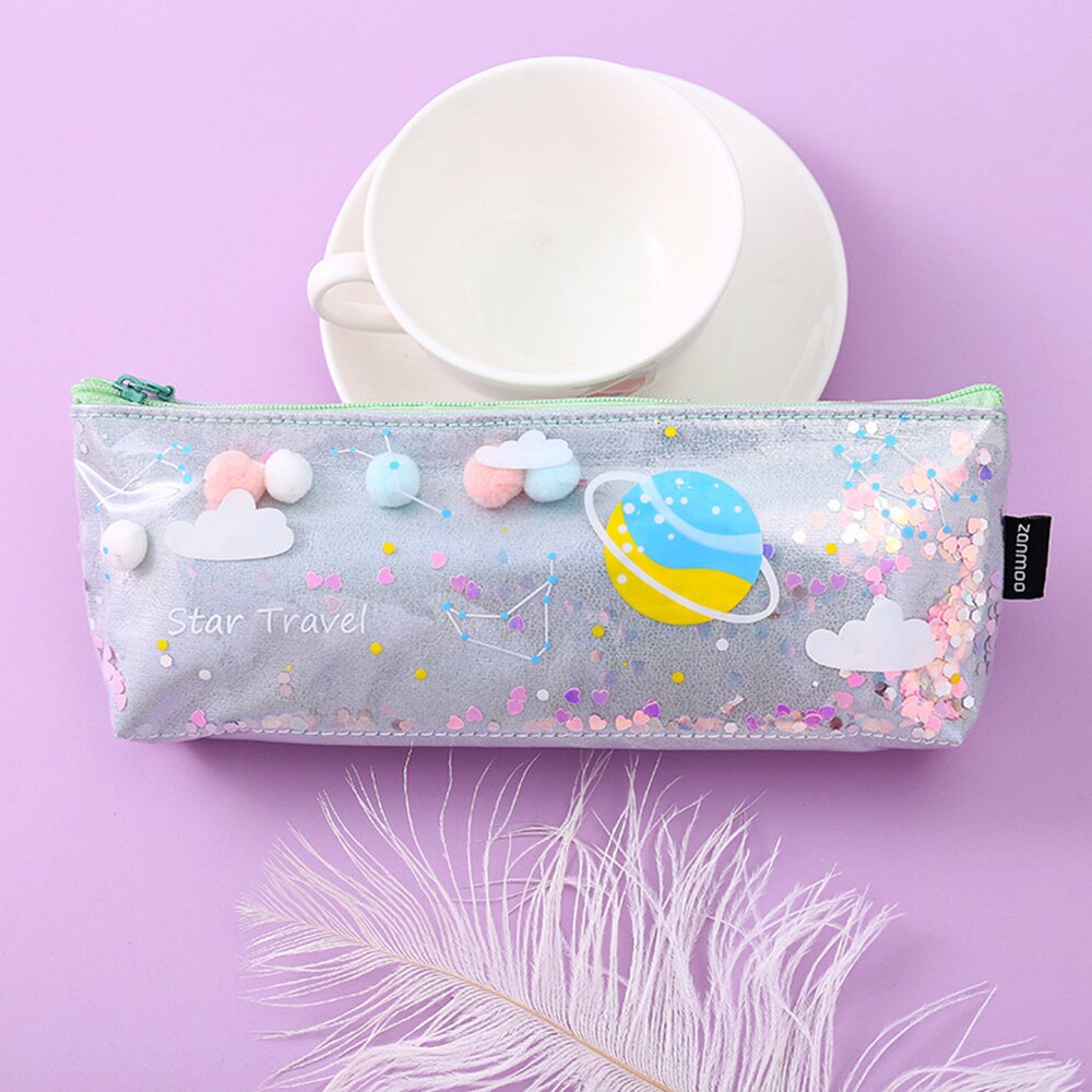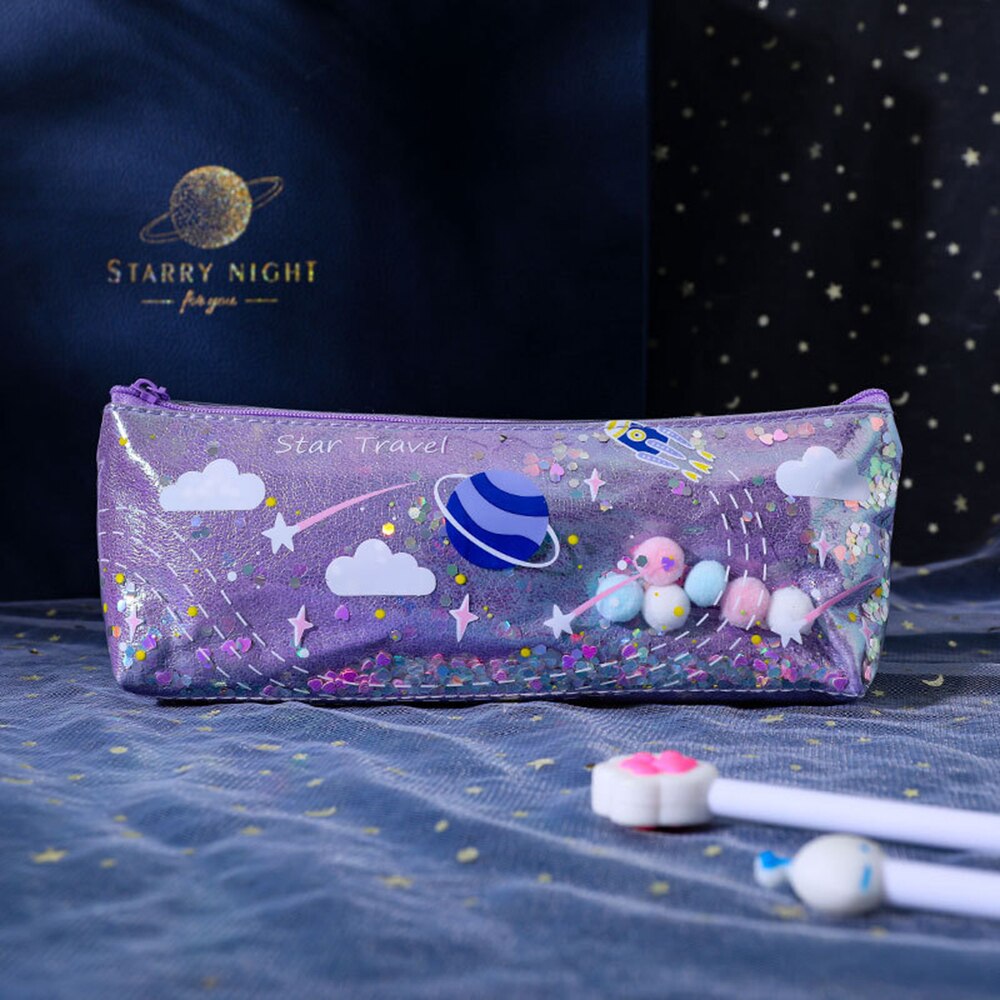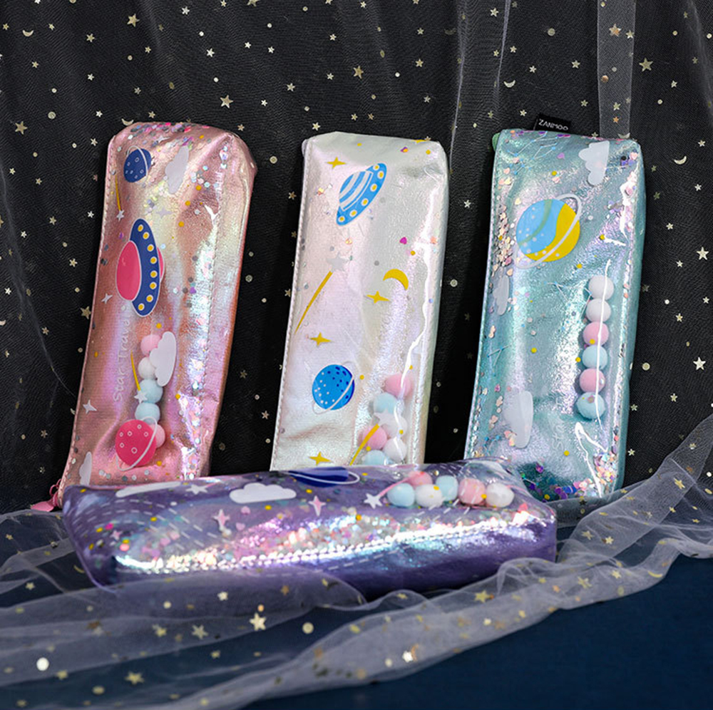 1Pcs Estojo Planetário De Lápis De Areia Movediça Brilhante Suprimentos De Papelaria