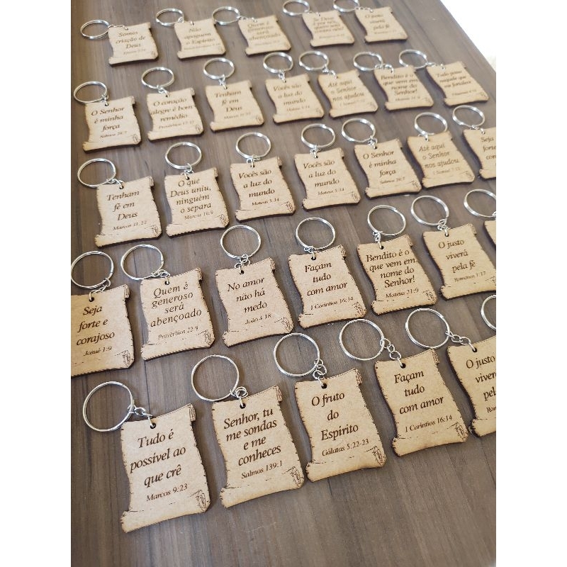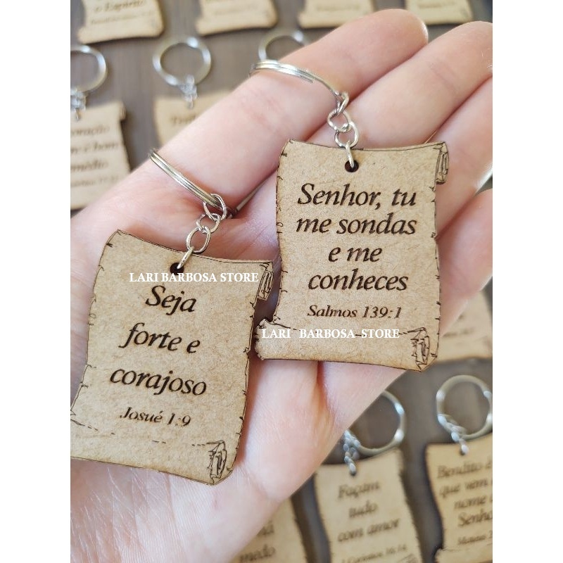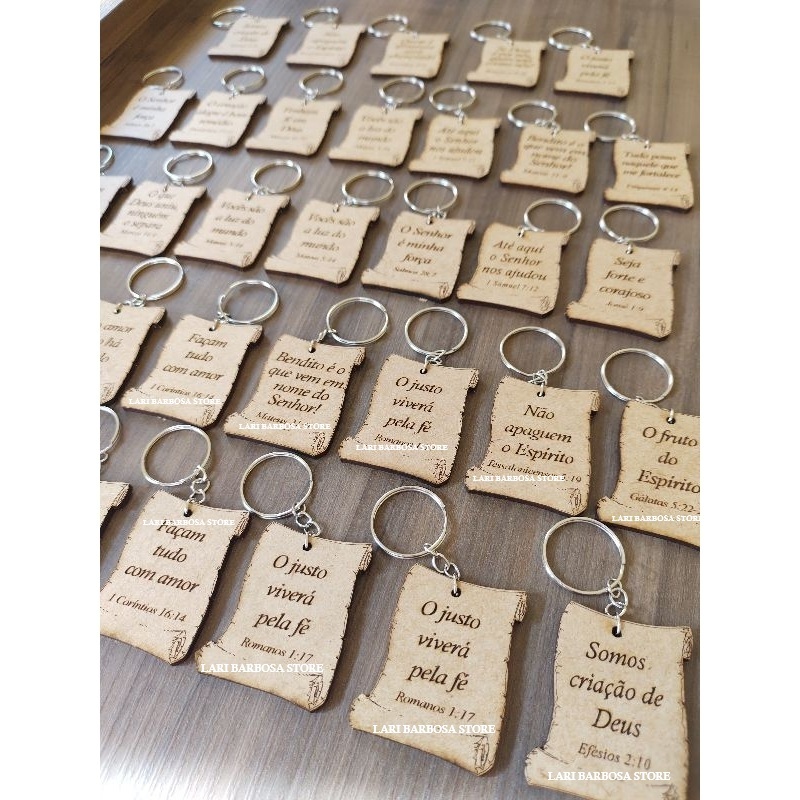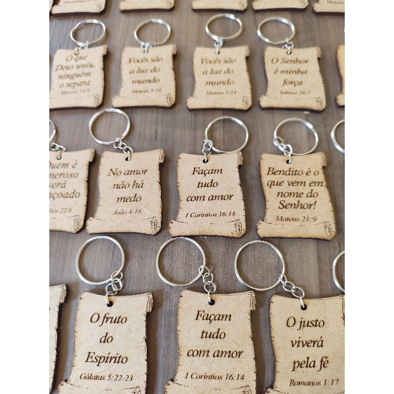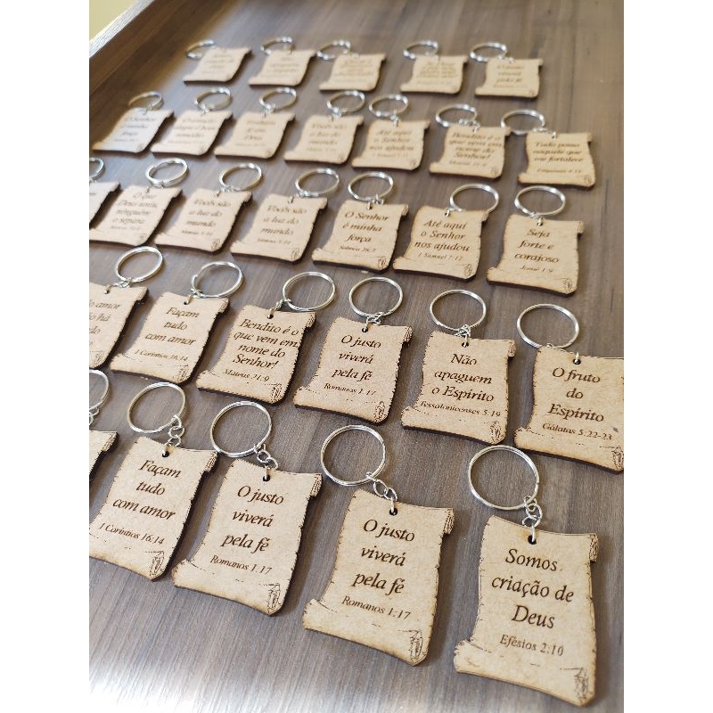 Chaveiros MDF Pergaminho Versículos Bíblico SORTIDOS lembrancinha cristã festividade igreja vão todos prontos montados