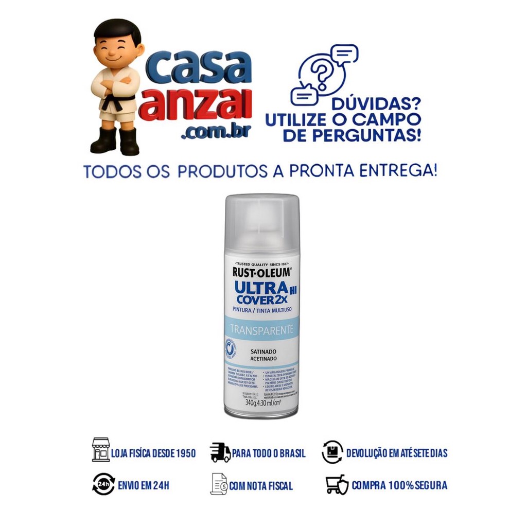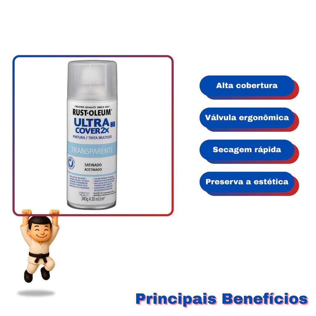 KIT 4 SPRAY TRANSPARENTE ULTRA COVER ACETINADO - RUST OLEUM