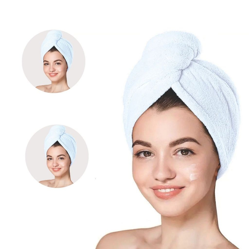 KIT 3 Toucas de Banho Atoalhada Seca cabelo com botão Preta e Branca