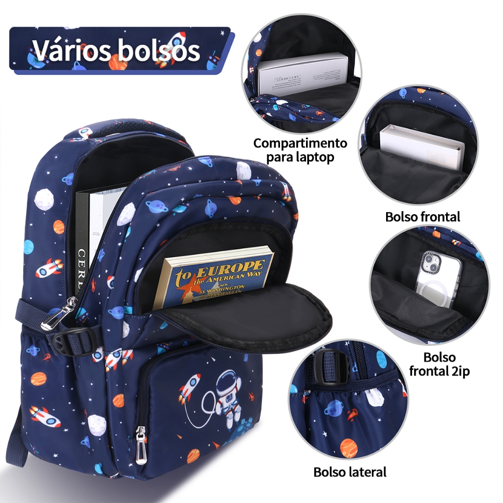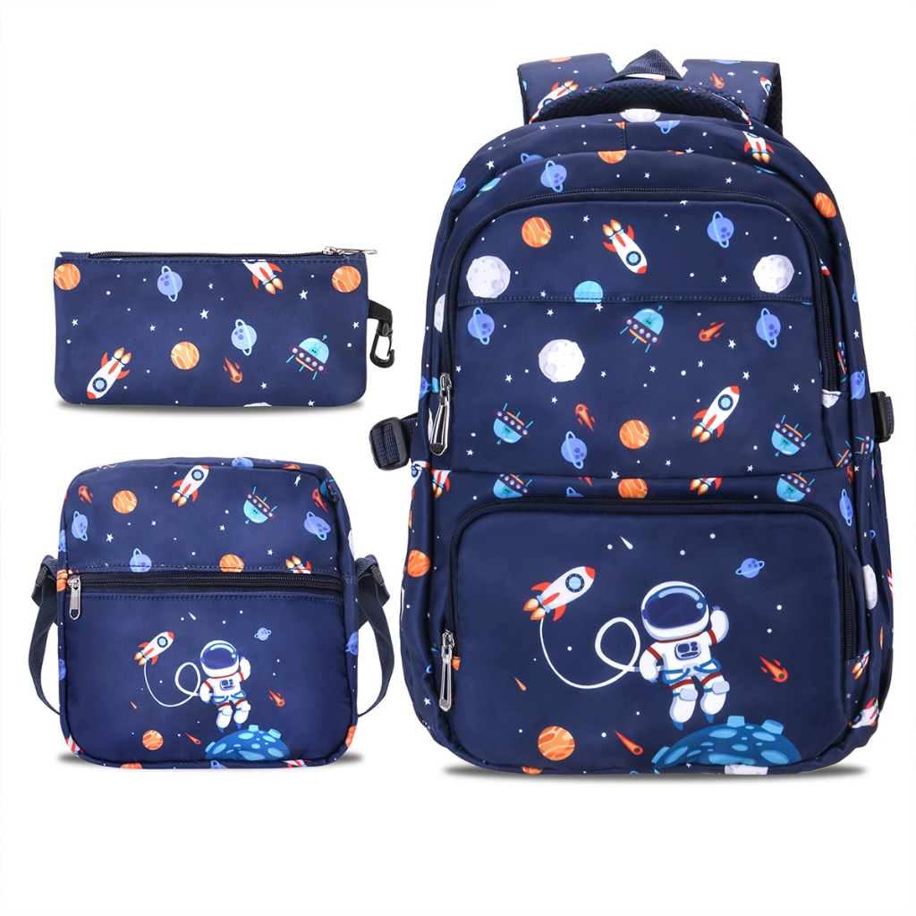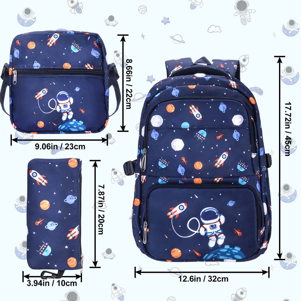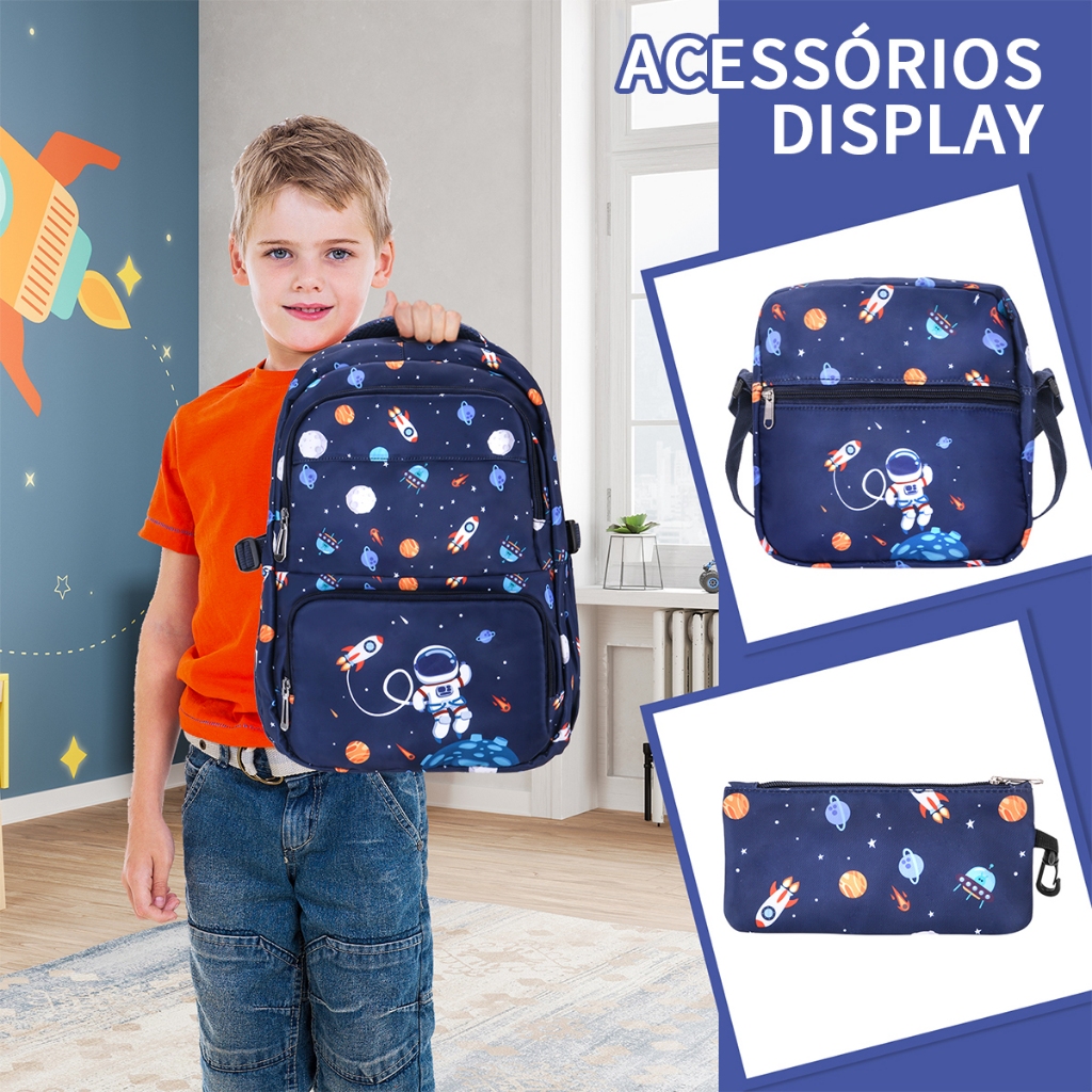 Kit Mochila Escolar 3 em 1 Preta com Tema de Astronauta Mochila Bolsa Transversal Estojo TADASHOPE