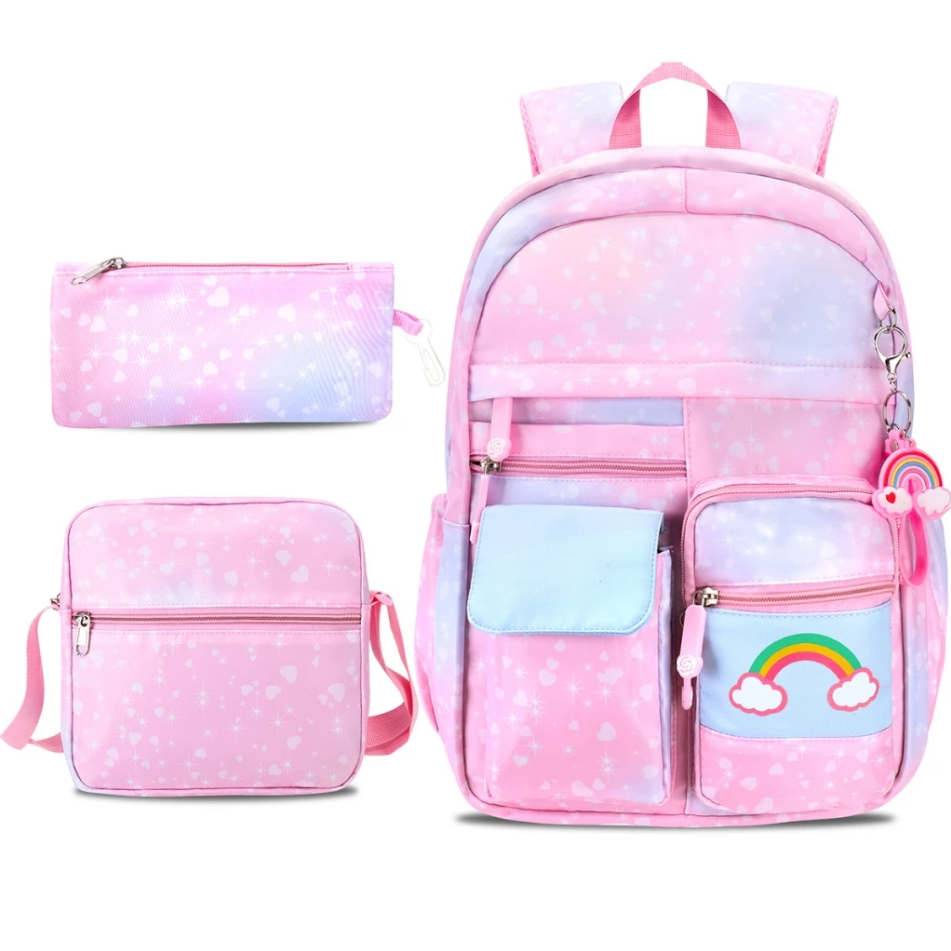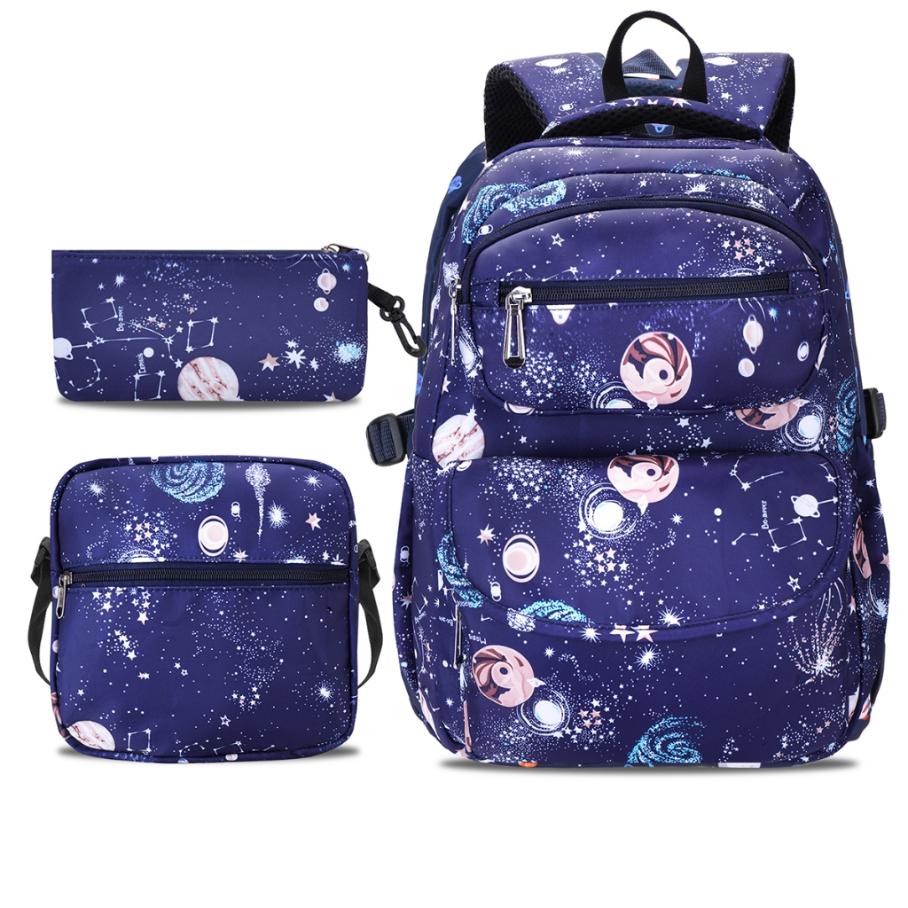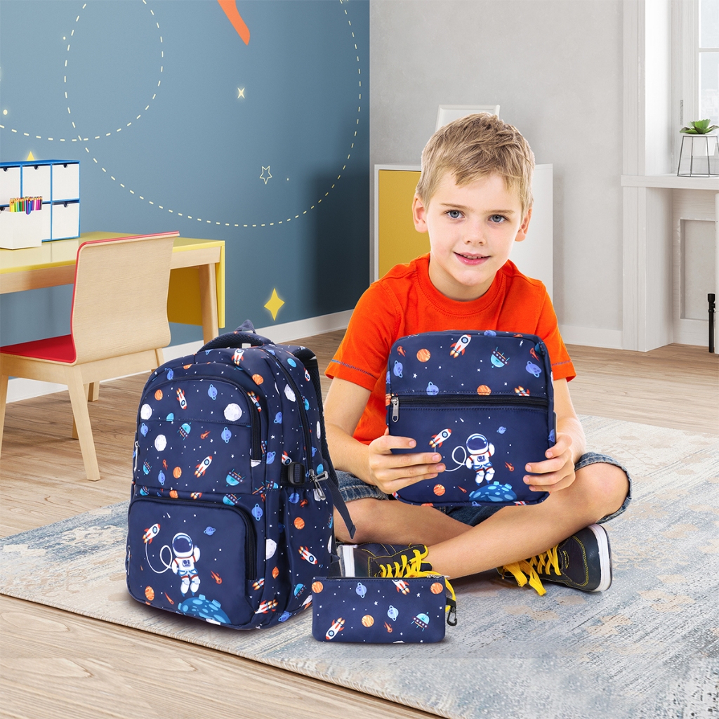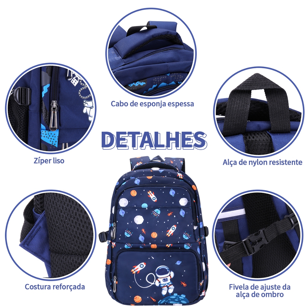Kit Mochila Escolar 3 em 1 Preta com Tema de Astronauta Mochila Bolsa Transversal Estojo TADASHOPE