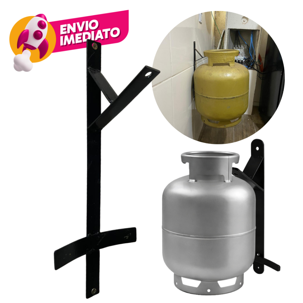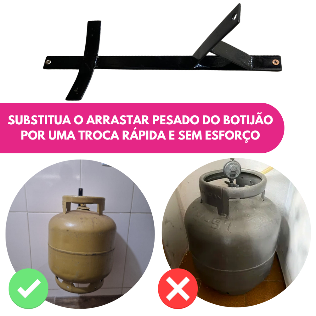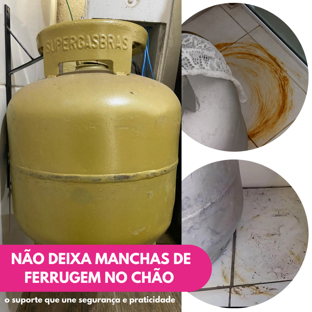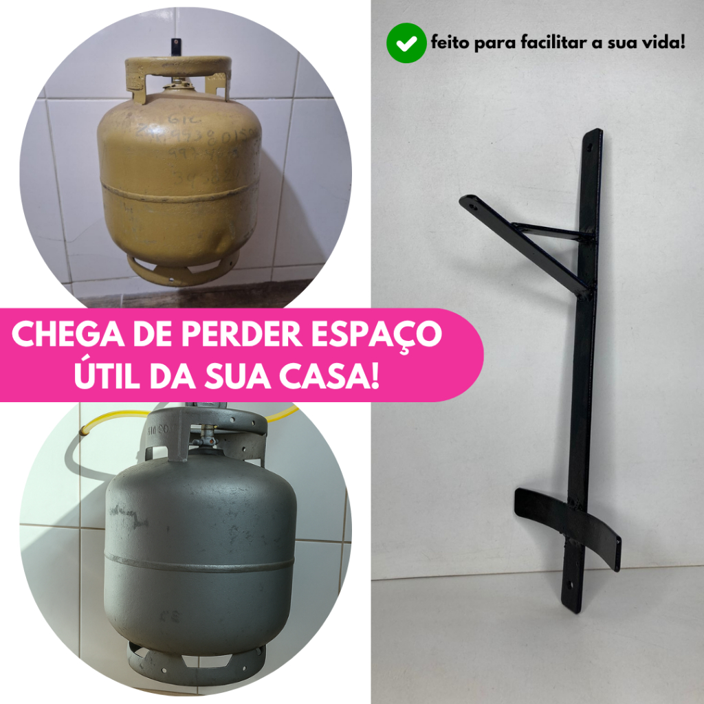 Suporte Reforçado Botijão De Gás P13 Antifurto Roubo Aço Trava Parede Suspenso Cozinha Organização