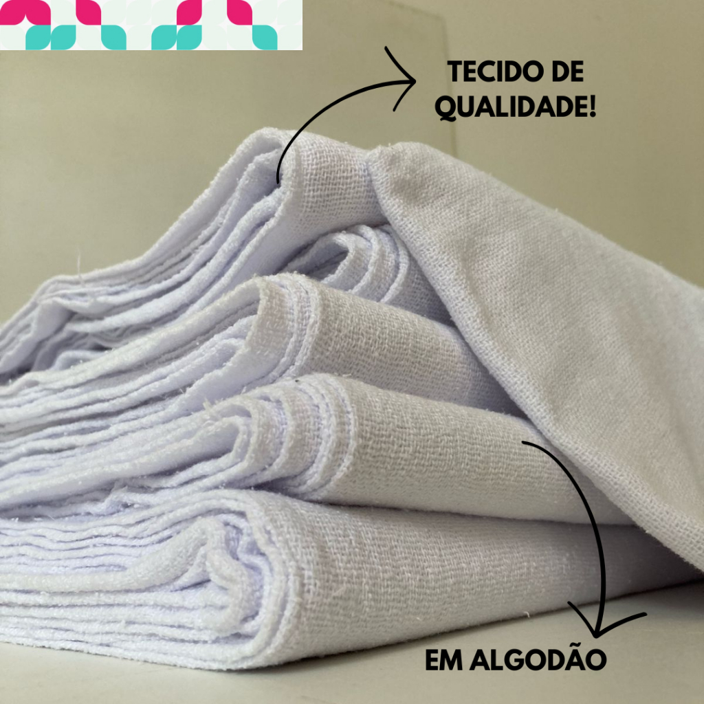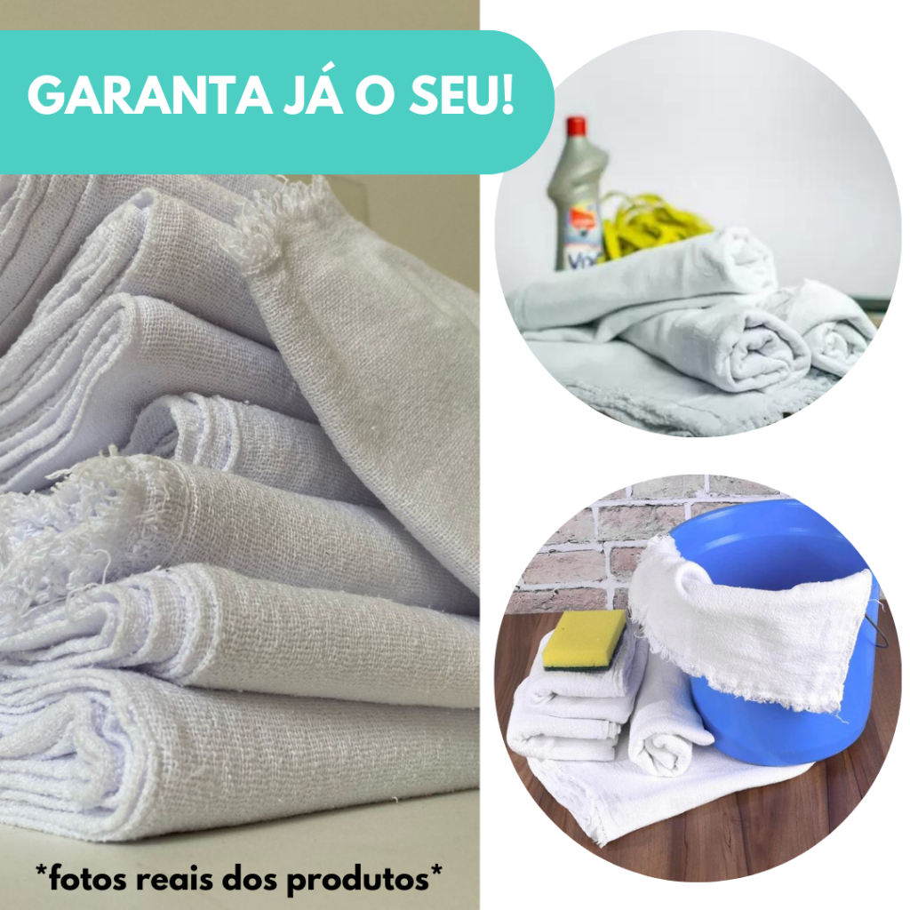 KIT Pano Chão Saco Alvejado Duplo Resistente Grande Algodão Branco Limpeza Em Geral C/ 5, 10 ou 20Un