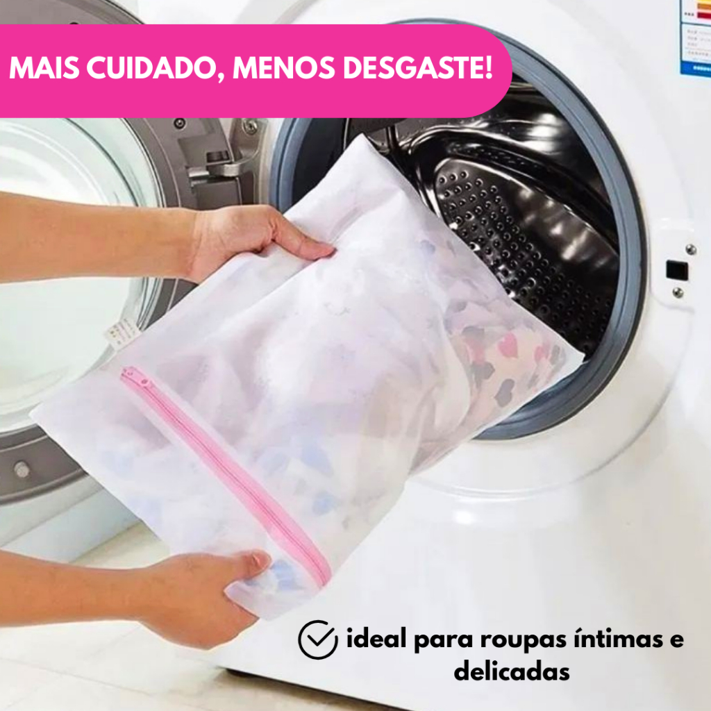 Kit Saco Roupa Delicada Lavar Máquina Saquinho Ziper Proteção E Organização Mala Viagem 30x40+40x50