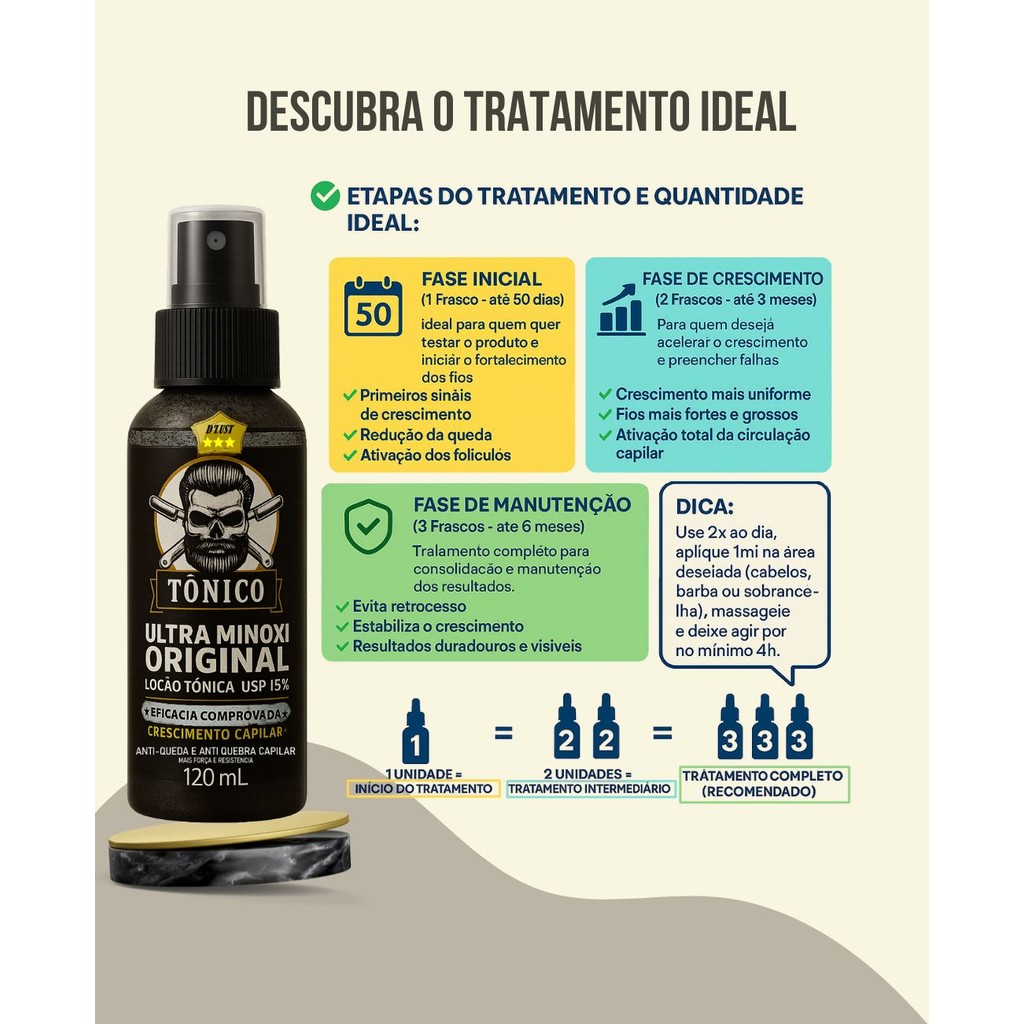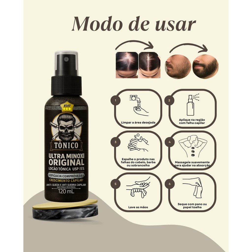 Tônico Crescimento Capilar, cabelo, barba e sobrancelha