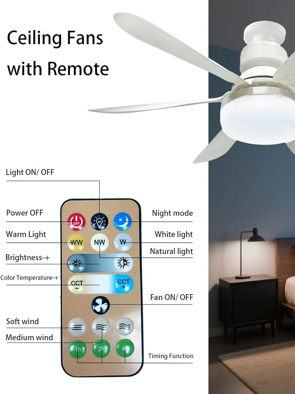 Ventilador Lâmpada De Teto Com Luz Wind Light Silent Controle Remoto