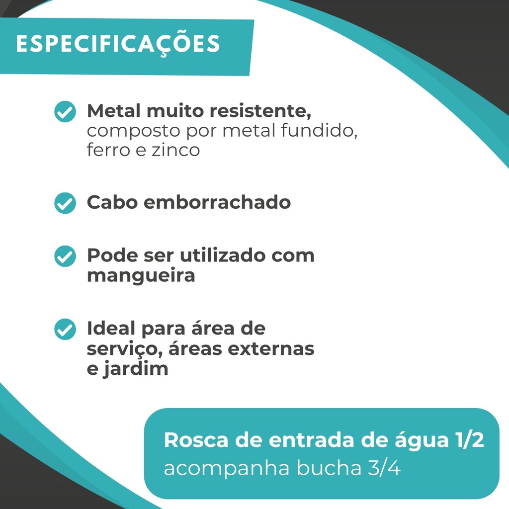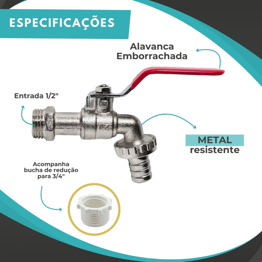 Torneira Esfera com Bico 1/2 x 3/4 Jardim Garagem Quintal Tanque 1/4 de Volta